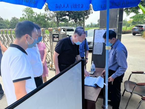 为全面贯彻落实省委书记王晓晖对成都地区疫情防控工作指示精神和省委省政府 “七下八上” 汛期防汛工作要求 ,7月21日下午,院党委委员、机关党委书记段晓明带领院办公室副主任伍红梅、彭建华、刘强和院保卫科科长周洋,分别到院新都基地、郫都基地进行疫情防控和汛期预防的专项安全生产大检查。院加工所党委副书记、所长宣朴,所党委委员、副所长李浦和基地负责人一同参加并向段晓明一行做了现场汇报。