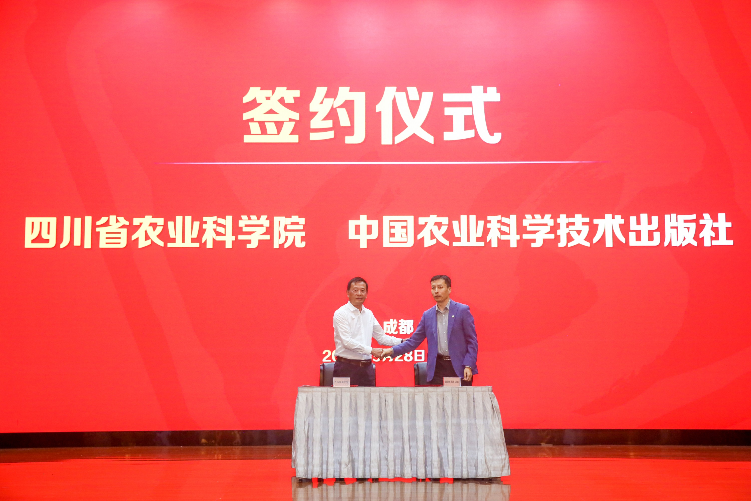 发布会上,牟锦毅与中国测试技术研究院、省统计局、省地方志办、中国农业科学技术出版社、省农业农村厅等单位领导共同为院志揭幕。院党委副书记张雄等院领导向省科技厅、农业农村厅等近10家单位赠书。院党委委员、副院长刘永红分别与省统计局、中国农业科学技术出版社签署战略合作协议。