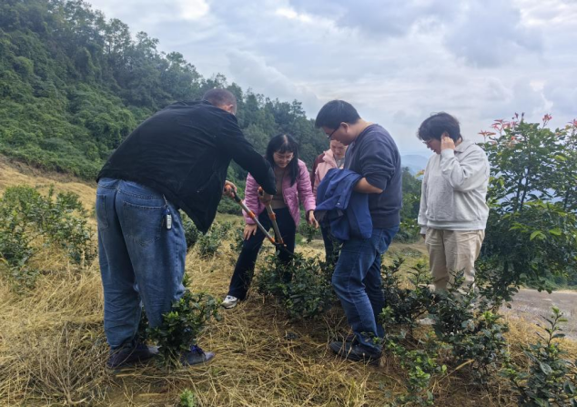 此次指导主要针对公司近年新建的高海拔幼龄茶园。为了保障茶苗顺利越冬,团队一行根据茶树品种的生长特性制定冬季管护措施。团队一行首先系统地向公司技术人员讲解了幼龄茶园定型修剪的关键技术,特别强调了首次定型修剪的最佳时机、修剪程度技巧等,并亲自进行现场操作示范,确保在场的技术员与茶农能够直观理解并掌握要领。团队一行还就茶园冬季管护基肥施用(“有机肥+复合肥”施肥模式的技术要领)以及45%石硫合剂封园等进行了现场指导。
