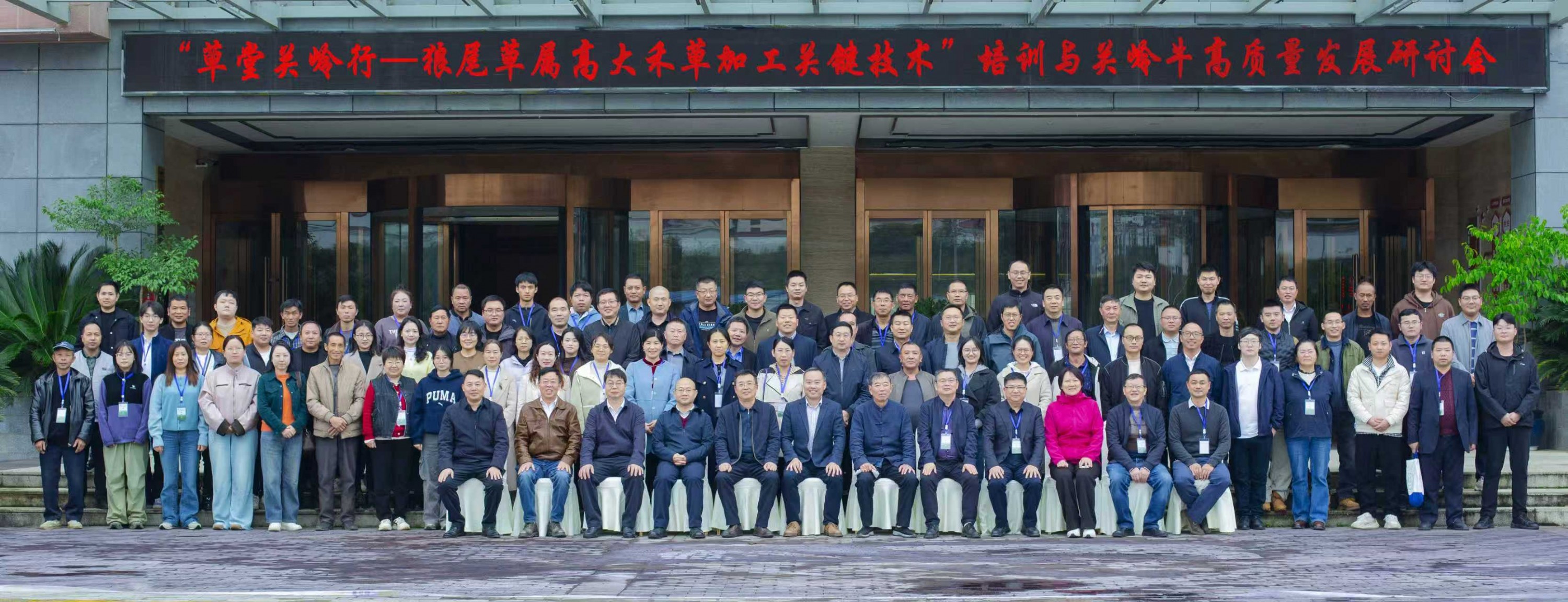10月25日,调研组在贵州关岭参加了由国家牧草产业技术体系主办,黔南综合试验站、贵州省农业科学院草业研究所承办的“草堂关岭行——狼尾草属高大禾草加工关键技术”培训与关岭牛高质量发展研讨会,并调研了关岭牛投资(集团)有限责任公司及关岭牛核心育肥场,通过现场观摩与田间课堂,深入了解牧草青贮、草产品加工及杂交狼尾草栽培等情况。