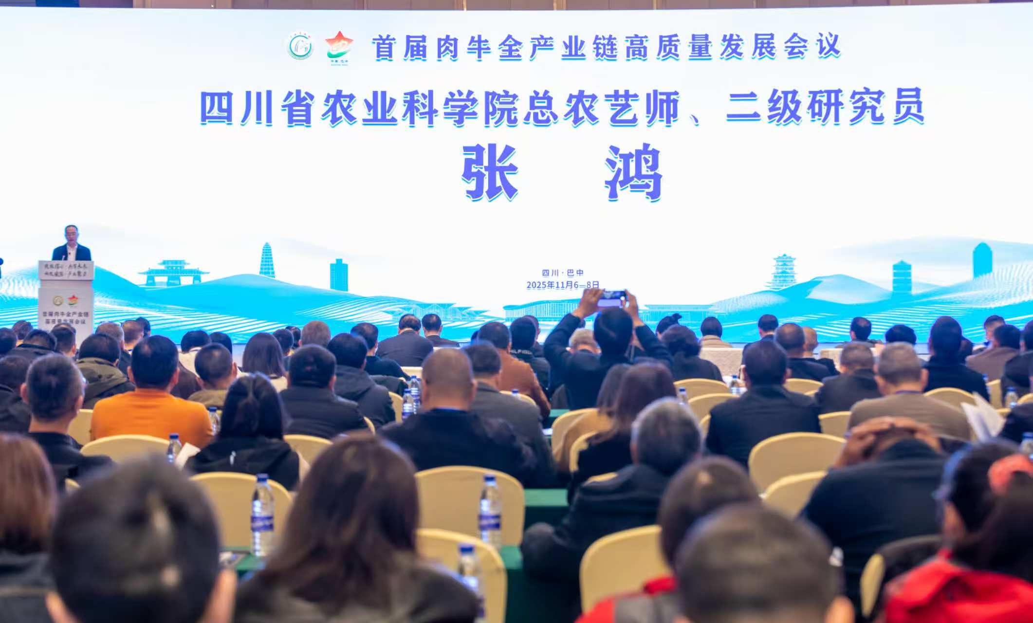 2025年11月6-8日,由中国农学会主办,省畜科院等单位承办的“首届肉牛全产业链高质量发展会议”在巴中市成功召开。农业农村部原总畜牧师张天佐、全国畜牧总站副站长左玲玲出席会议并做作主题报告。巴中市委副书记、市长高鹏凌,四川省农业农村厅二级巡视员陈开勇等领导嘉宾出席开幕式并致辞。受四川省农业科学院党委书记、院长牟锦毅委托,院总农艺师张鸿参加会议并致辞。会议由农业农村部人力资源开发中心纪委书记、中国农学会副秘书长牛敏杰主持。国家肉牛牦牛产业技术体系专家、各省肉牛创新团队专家、行业协会及产业链相关企业代表等600余人参会。