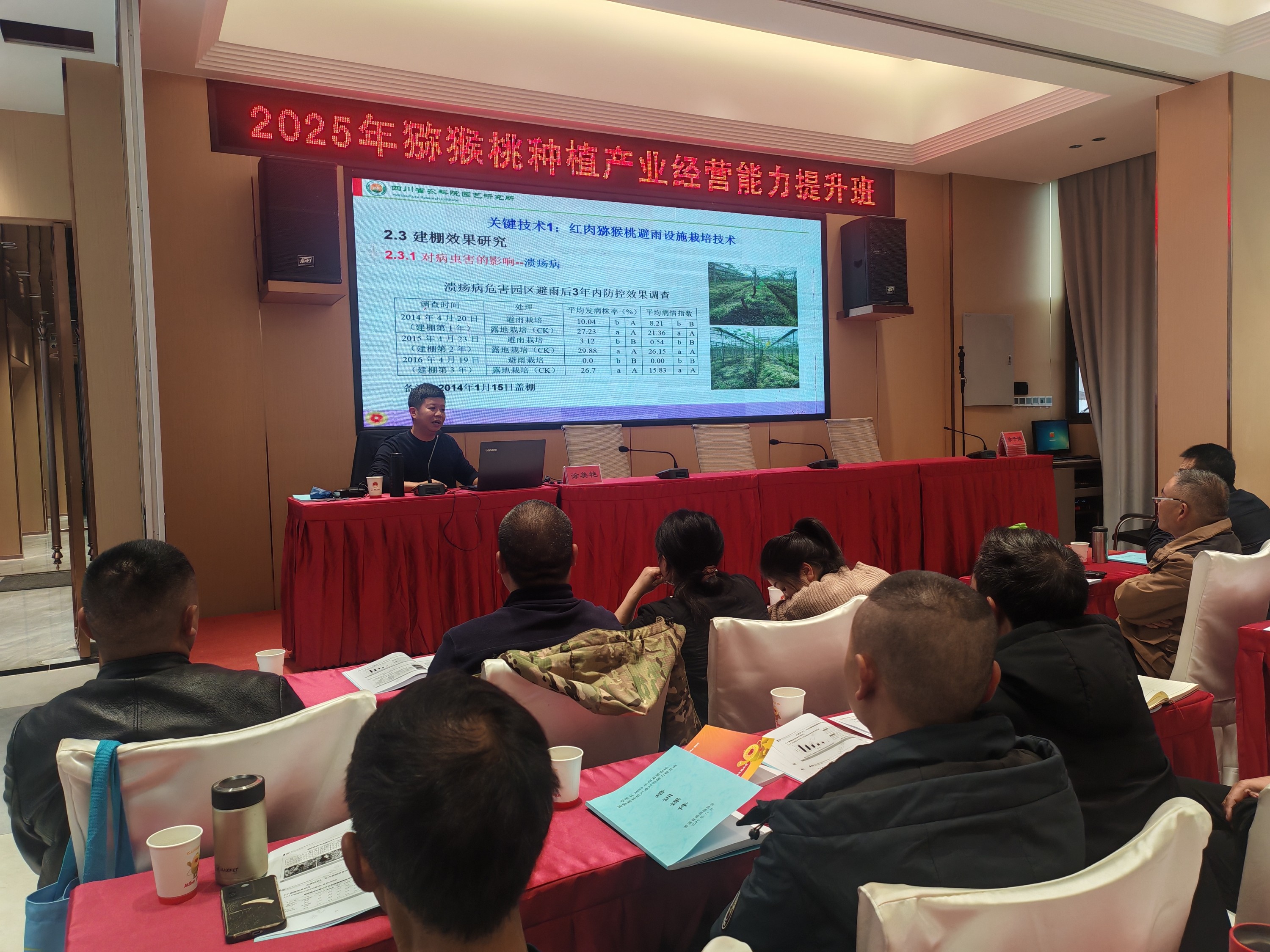 为加快猕猴桃“新品种新技术新装备”在苍溪县的转化应用,提升当地猕猴桃产业发展水平,2025年11月11日至16日,院园艺所专家支撑苍溪县举办“猕猴桃种植经营能力提升培训”,来自全县60余名技术骨干和企业负责人参加培训会。