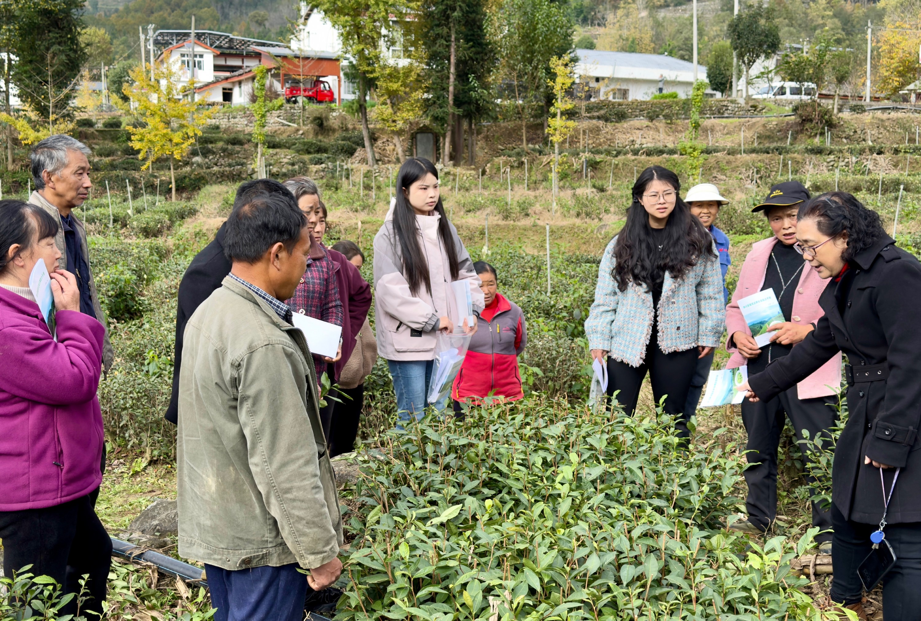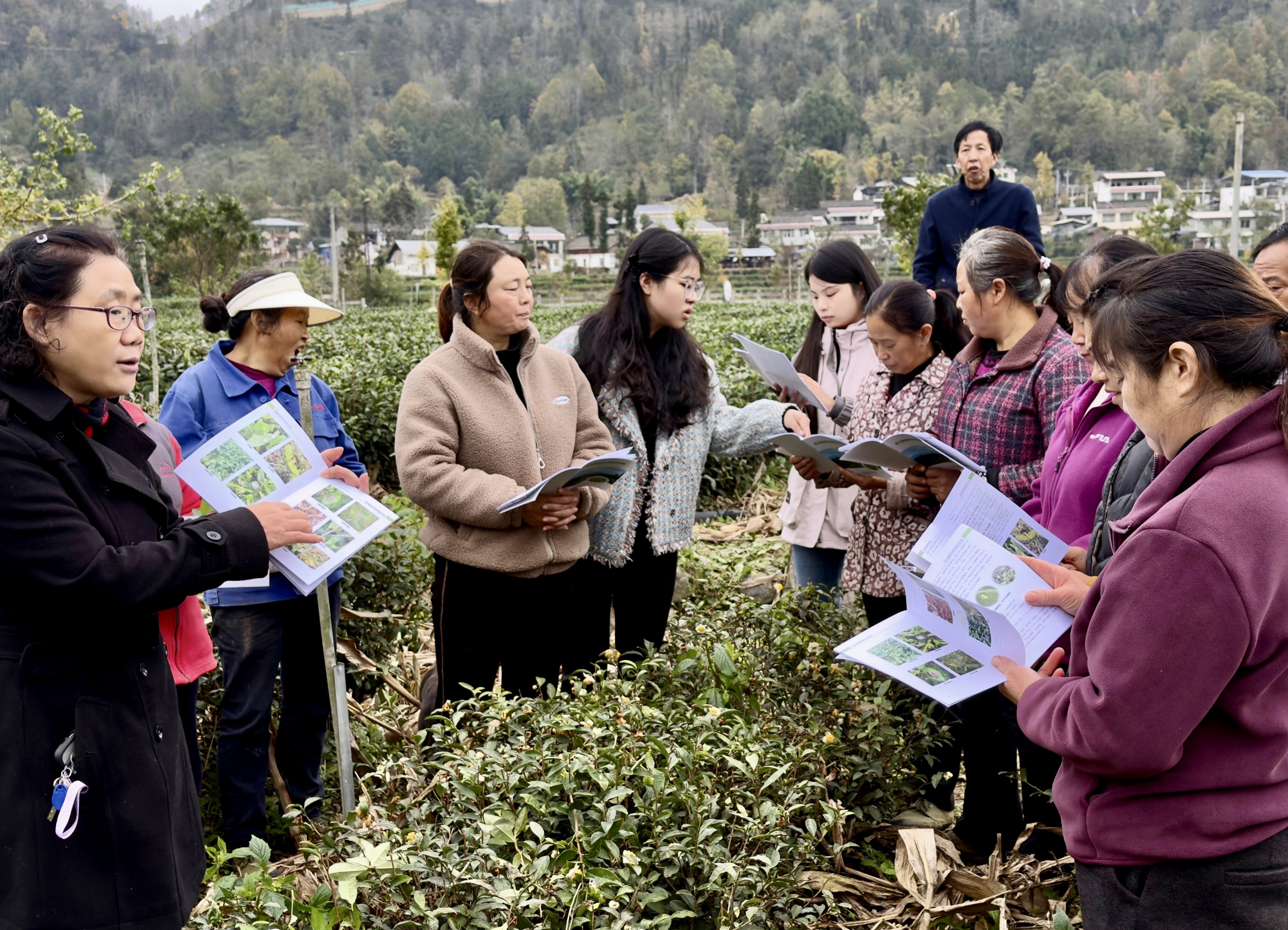 2025年11月11日,四川省农业科学院茶叶研究所王迎春研究员、高万君博士、梁星研究实习员等一行4人,联合青川县茶产业发展事务中心马浩强主任在广元市青川县蒿溪回族乡地坪村,开展了一场以“茶园栽培管理与绿色防控技术”为主题的现场培训,为当地茶农送去了实用、前沿的技术指导。
