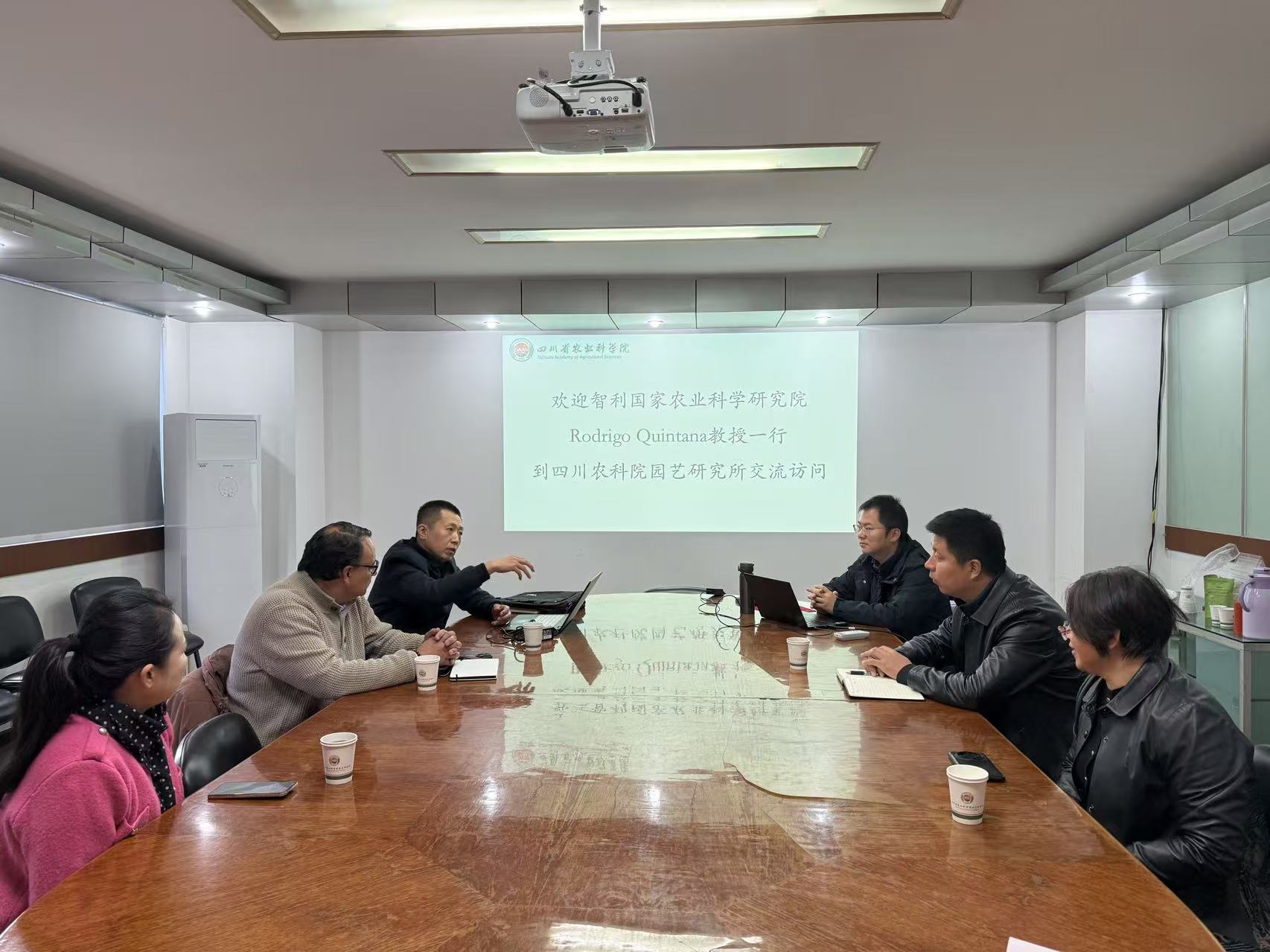 11月17日,应院园艺所邀请,智利国家农业科学研究院Rodrigo Quintana教授一行莅临院园艺所进行学术交流。院园艺所苗明军副所长主持会议,张泽锦副研究员、梁颖博士等参加交流活动。