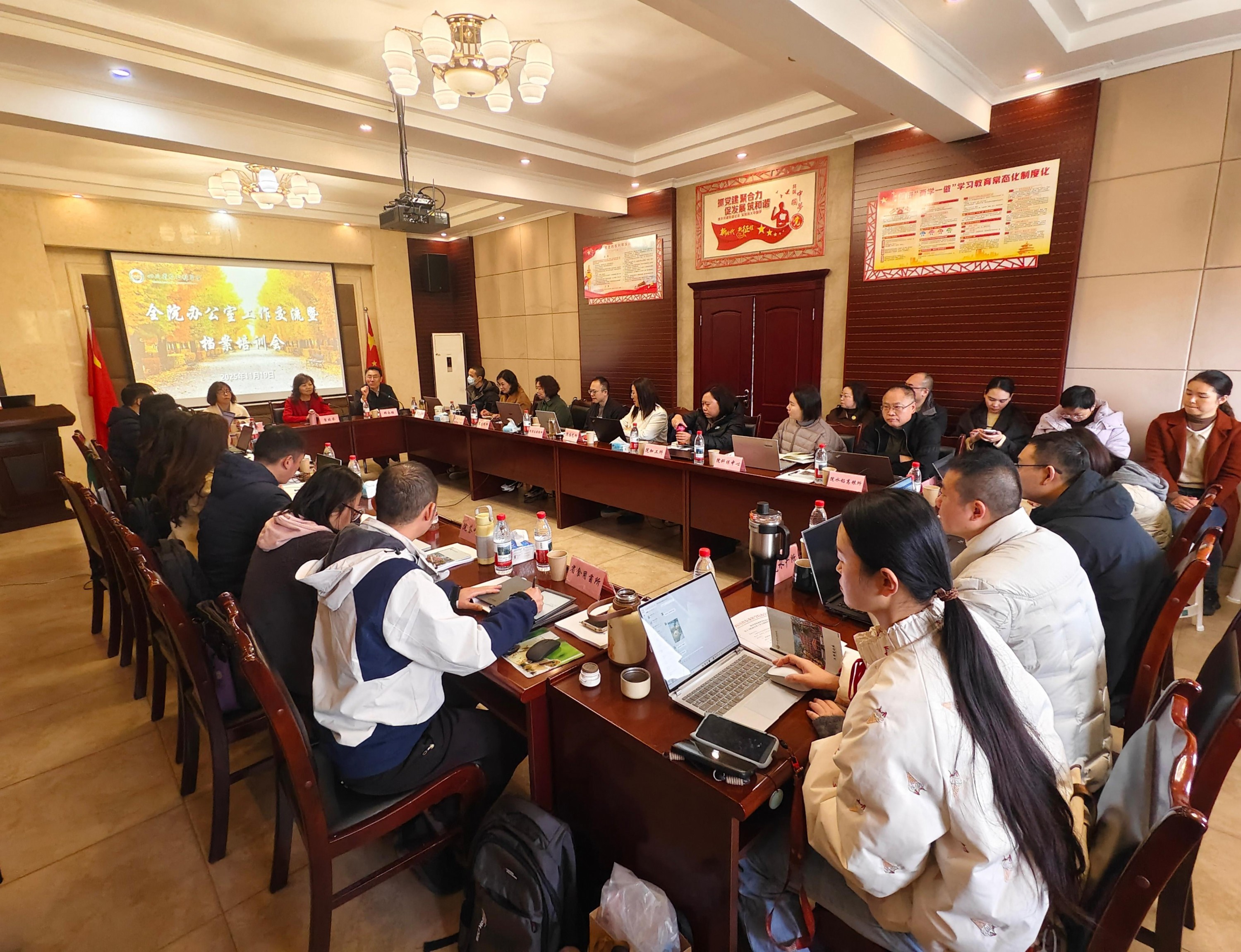 为高质量完成“十四五”暨2025年目标任务,落实落细办公室系统精细化管理,扎实推进全院档案管理系统的应用,11月19日,全院办公室工作交流暨档案培训会在院水产所顺利召开,院属各单位办公室主任、院办公室科级以上干部及档案工作人员40余人参会,会议由院办公室主任雷晓葵主持,院水产所党委副书记、所长邓永强出席会议并致欢迎词。