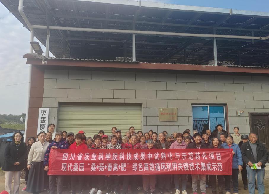 为持续推进四川省农业科学院中试熟化与示范项目“现代桑园‘桑+菇+畜禽+肥’绿色高效循环利用关键技术集成示范”的实施,加快科研成果转化落地,2025年11月20日,项目负责人王香君副研究员带领团队一行7人赴南充市嘉陵区金穗种养殖专业合作社开展“桑+菇+肥”循环农业专题培训会,50余名农业从业人员参加本次培训。