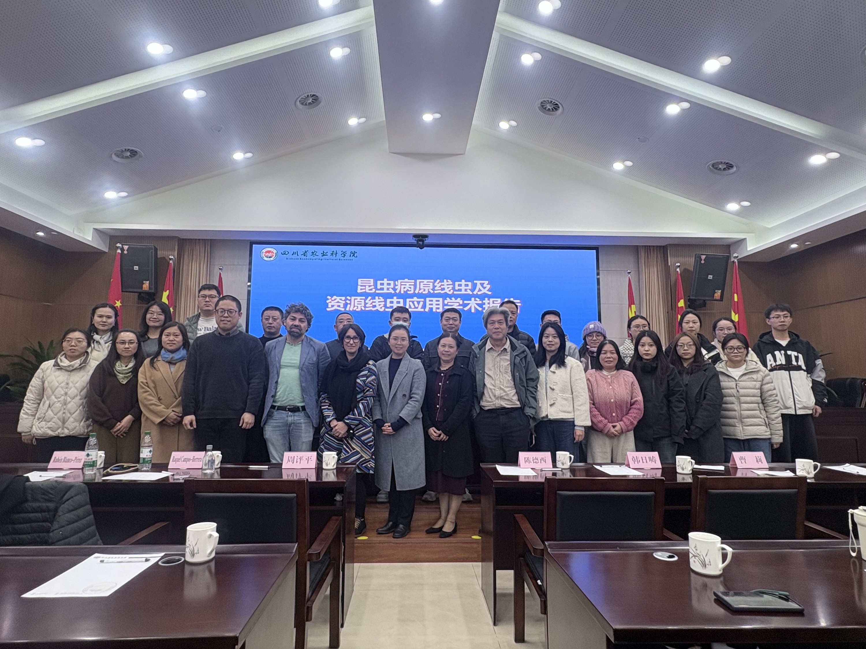 为贯彻落实院党委“深化国际合作,提升科研水平”的要求和“引智促发展”的工作部署,进一步汇聚国内外行业专家,搭建高水平、专业化的学术交流与协同创新平台。2025年11月18日,院植保所邀请西班牙科学院葡萄与葡萄酒科学研究所(ICVV-CSIC)的Raquel Campos-Herrera研究员、Rubén Blanco-Pérez研究员,广东省科学院动物研究所韩日畴研究员、曹莉研究员,福建农林大学植物保护学院吴升晏教授作专题学术报告,共同探讨昆虫病原线虫及资源昆虫领域的最新研究成果与可持续发展路径。会议由院植保所陈德西副所长主持,院科技合作处周评平处长见证中西科技合作协议的签署。省农科院作物所、植保所、遥感所、食用菌所、加工所、经作所等6个院属单位共40余名科技人员参加会议。