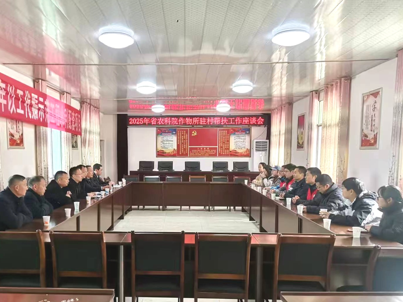 在驻村帮扶工作交流会上,林杰充分肯定了驻村队员的工作成绩,东龛村党支部书记王仕相介绍了东龛村的基本情况,驻村第一书记张浙峰汇报了驻村帮扶工作进展、存在问题和下一步工作计划。段朝俊感谢各方对驻村帮扶工作的支持,表示将坚持党建引领,进一步深化驻村帮扶工作,持续加强联动,推动科研资源与乡村发展精准对接,助力东龛村产业振兴。