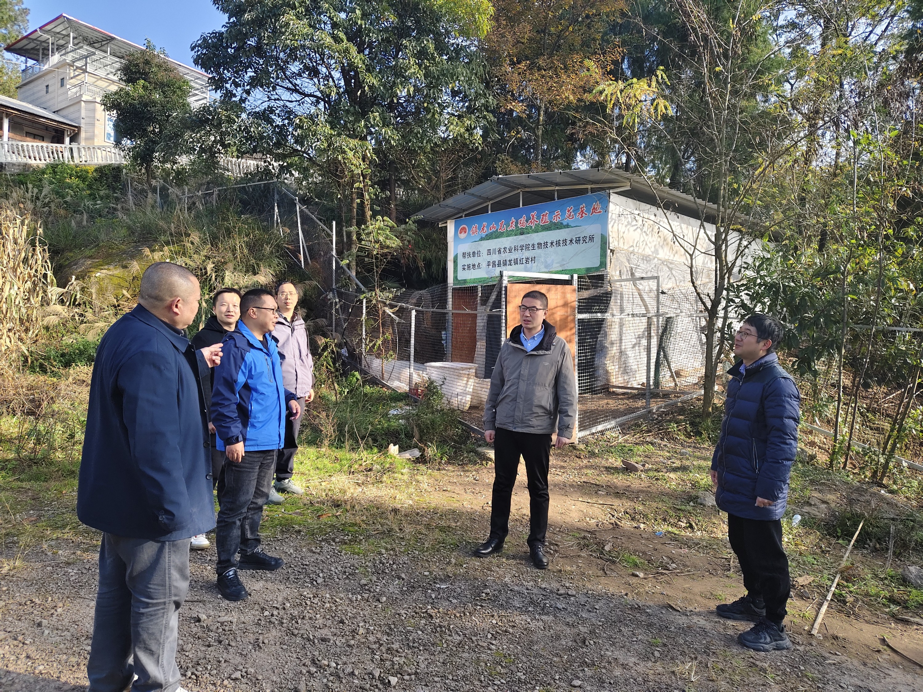 随后,冯俊彦与平昌县镇龙镇党委书记苟子荀、村两委成员以及驻村工作队开展座谈。会上,苟子荀书记对院生核所长期以来的帮扶支持表示衷心感谢,并介绍了镇龙镇在推动红岩村乡村振兴过程中的整体思路和具体举措,希望下阶段在生核所的持续帮扶下使红岩村的瓦灰鸡特色养殖产业再上一个台阶。冯俊彦对红岩村及驻村工作队取得的阶段性成效表示祝贺,并强调,要进一步加强科技引领,总结前期取得的经验,持续优化示范基地的管理与推广规模,实现产业增效、农民增收。同时要强化驻村工作队与村两委、镇党委的沟通协作,形成工作合力,共同推动红岩村产业发展再上新台阶。