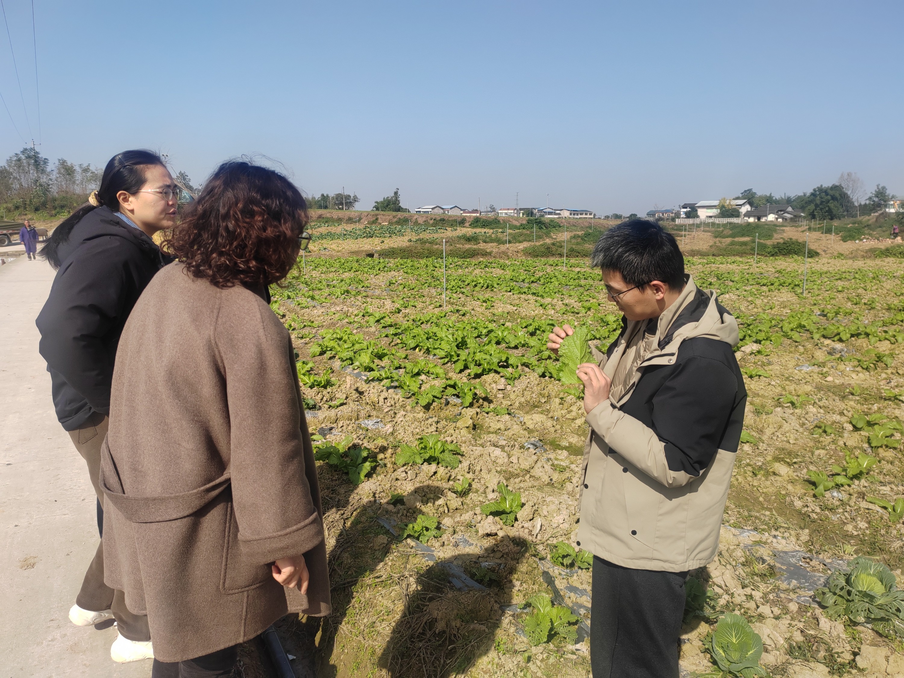 2025年11月25日,院植保所科技人员张河庆应邀赴广安市岳池县开展蔬菜病虫害识别与绿色防控技术培训。此次培训参会人员包括岳池县14个镇的农技人员20余人,通过培训,参训人员对蔬菜病害分类方法、当地常见蔬菜病虫害识别有了直观了解,对常见病虫害的绿色防控有了基础掌握。培训会结束后,张河庆与园艺所宋占锋研究员、省农机院杨昌敏高级工程师、岳池县现代农业园区服务中心杨婉玲老师一行赴蔬菜园区进行调查,调查过程中发现,甘蓝、青菜蜗牛发生严重,专家一行对蜗牛及菜青虫等常见虫害的绿色防治提出了指导意见;同时发现花菜上出现叶脉间白枯症状病害,疑似细菌性病害,采样后将进行进一步鉴定。此次培训活动提高了参训人员对蔬菜病虫害的识别能力和蔬菜病虫害绿色防控意识,增强了省农科院与岳池县的合作。