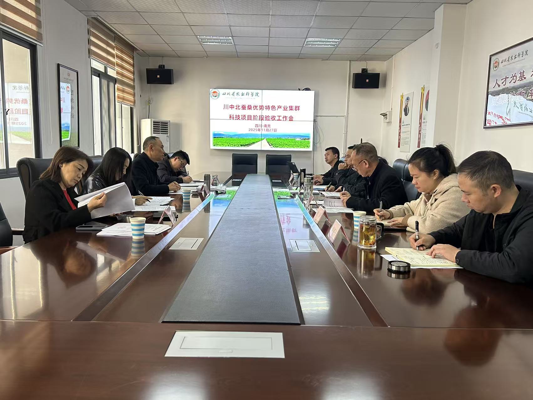 根据农业农村部乡村产业发展司《关于印发〈优势特色产业集群项目管理工作规程(试行)〉的通知》(农产综函〔2025〕9号)等文件要求,为确保四川川中北蚕桑优势特色产业集群科技创新项目顺利实施,南充市农业农村局于2025年11月27日组织专家对院蚕业所承担的集群项目开展阶段性验收。本次验收由5名专家组成,南充市蚕业管理总站站长毛业炀任组长。我所副所长黄盖群,以及科管办、条财办、各项目团队负责人与骨干成员参加了会议。