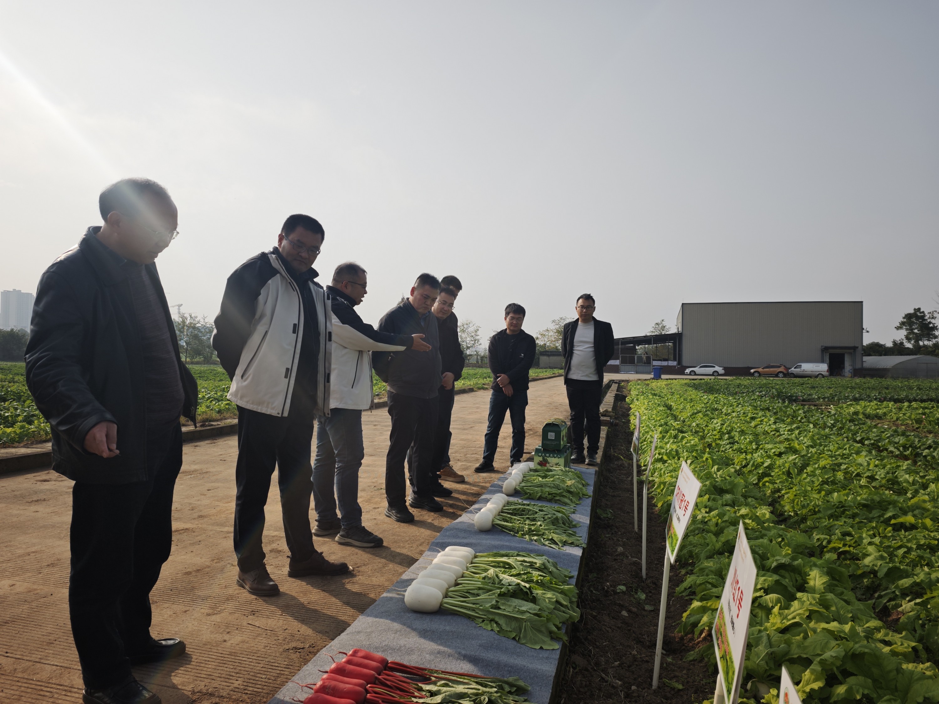 会前,院科管处一行还实地参观了德阳科研试验基地,经作中心副主任杨峰详细介绍了萝卜的研究进展情况。
