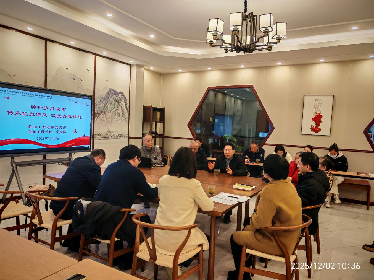 为促进优良传统赓续与青年人才培养,2025年12月2日上午,加工所退休党支部与科研一党支部在所四合院品鉴室联合举办主题为“聆听岁月故事 传承优良作风 激扬青春梦想”的共建活动。活动特邀所党委委员、副所长李治华、高佳出席,两个支部的党员共聚一堂,共话传承,共创未来。活动由后勤中心主任王娟主持。
