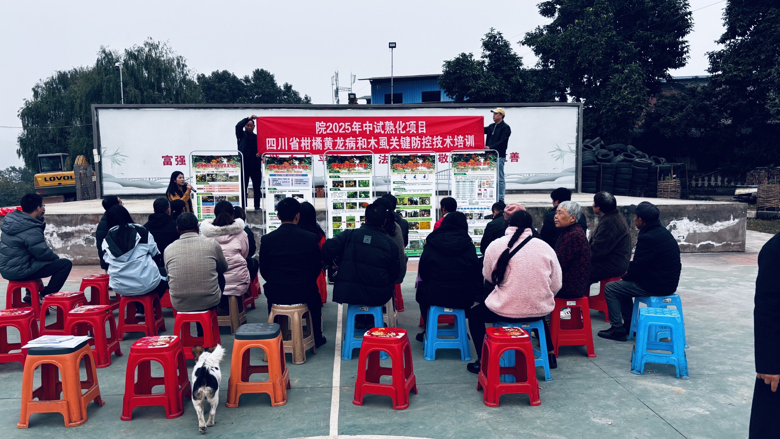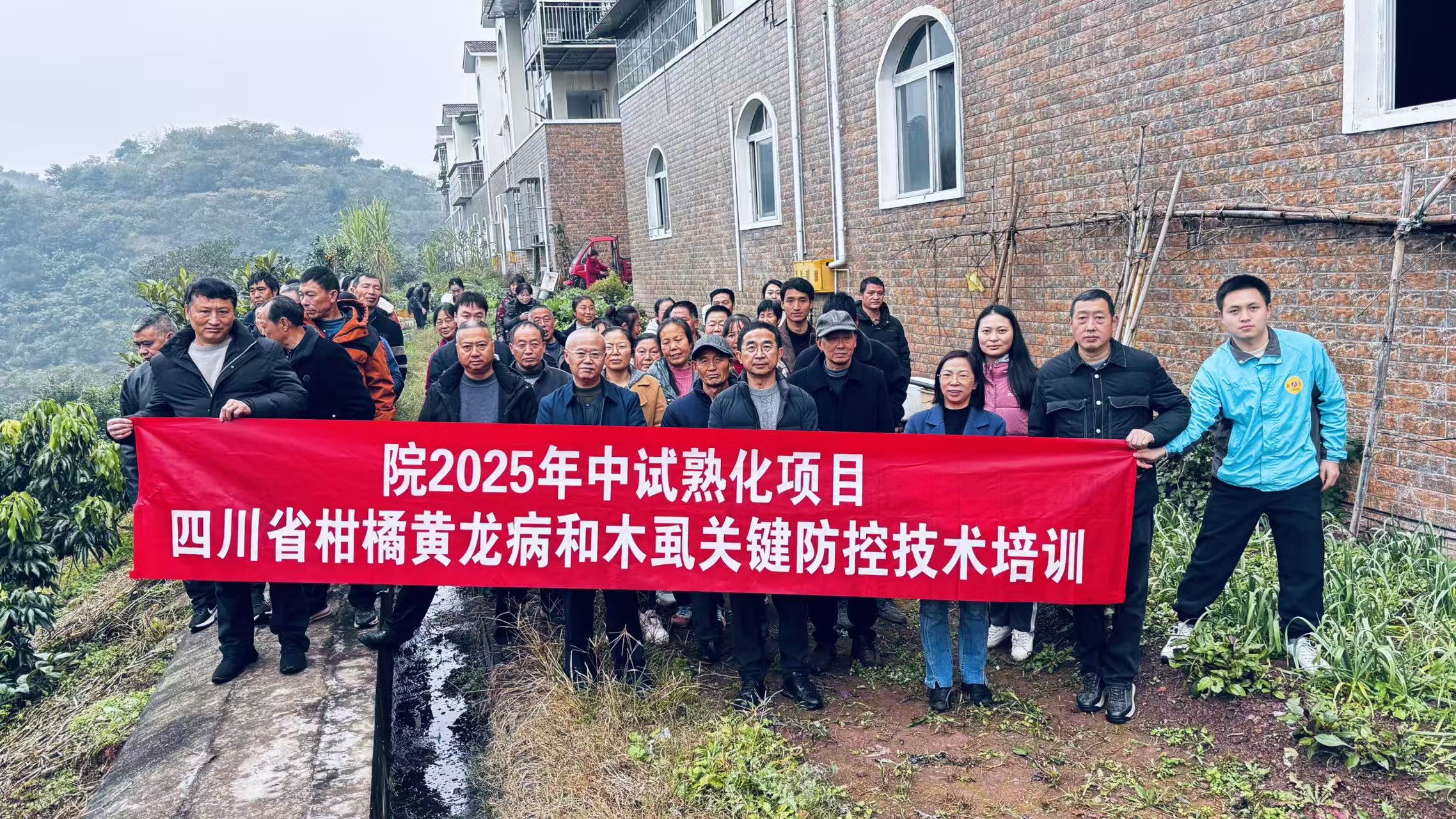 为扎实推进我省柑橘黄龙病及木虱阻截防控工作,加快科研成果转化落地,12月2-3日,院植保所2025年院中试熟化项目“四川省柑橘黄龙病和木虱关键防控技术成果示范”项目组联合宜宾市翠屏区农业农村局组织召开柑橘木虱暨柑橘黄龙病阻截防控技术培训会,全区所有镇(乡、街道)植保技术人员、柑橘种植大户、基层农技人员以及当地农户共计200余人参加培训。