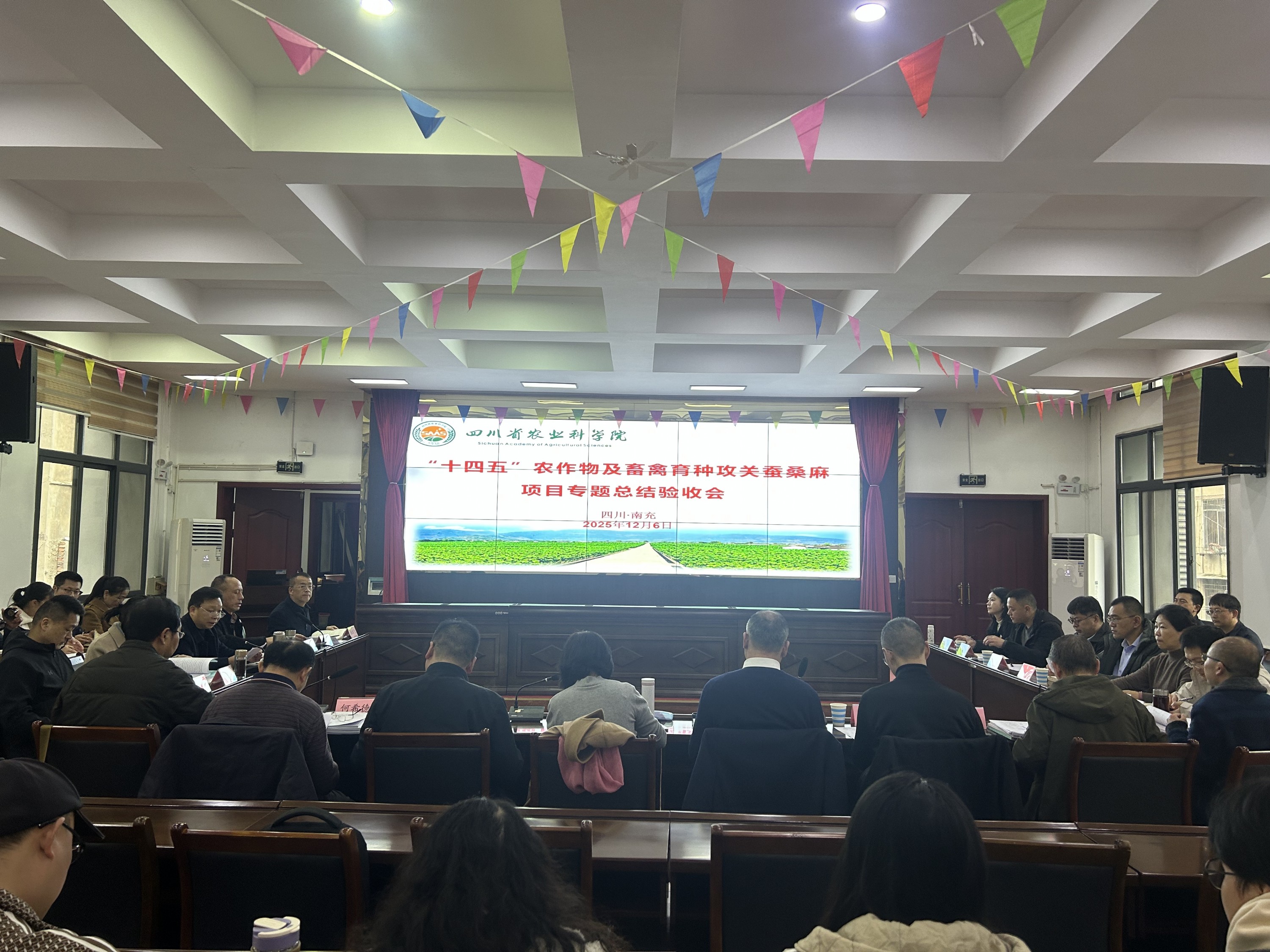 为加强“十四五”省农作物及畜禽育种攻关“突破性蚕桑麻育种材料和方法创新及新品种选育”项目管理,做好成效梳理统计,顺利完成验收评价,2025年12月6日,项目总结及专题验收评价工作会在南充召开。四川省农村科技发展中心主任周华强,蚕业管理总站站长王彦红、副站长杨远萍,院科技管理处处长王自鹏到会指导,项目参与单位和主持单位相关领导专家共40余人参会。会议由蚕业所学术总师、项目首席专家张友洪研究员主持。
