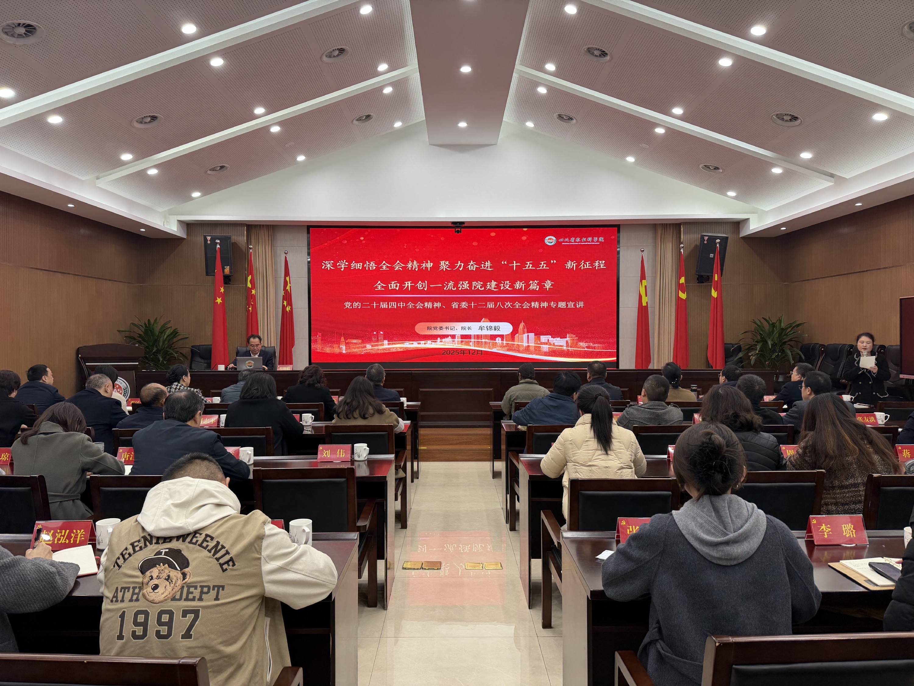 按照省委统一部署和院党委工作安排,12月10日,我院召开党的二十届四中全会和省委十二届八次全会精神专题宣讲报告会。院党委书记、院长牟锦毅作专题宣讲,院党委办公室主任伍红梅主持会议;院机关副处级及以上领导干部,省畜科院、院生核所、院蚕业所领导班子成员及总师参加会议。