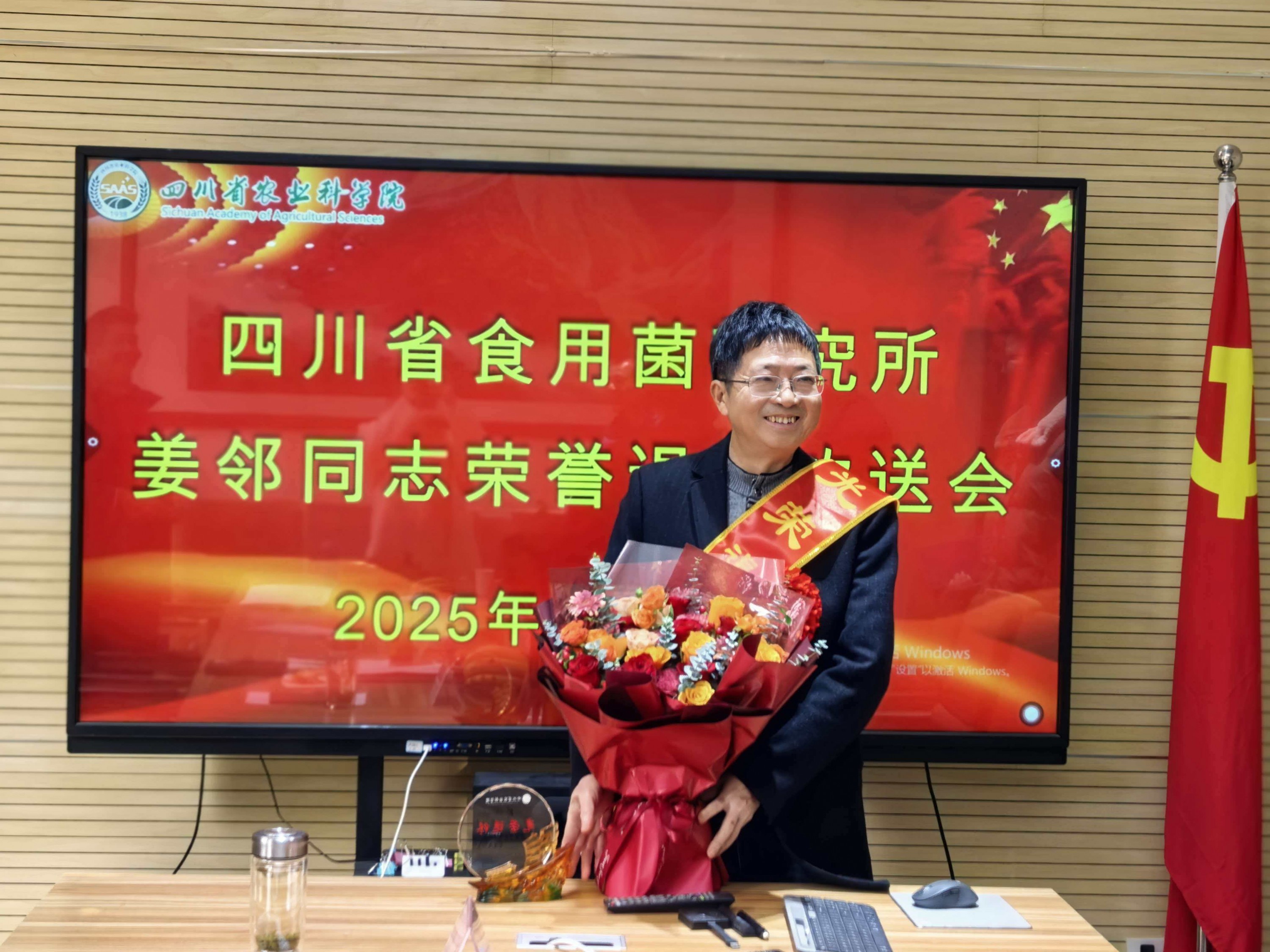 近日,省食用菌所在所三楼会议室为食用菌栽培专家、研究员姜邻同志举行了光荣退休仪式。仪式由所党委书记常伟主持,所领导班子成员、管理部门、课题组成员及职工代表参加仪式。