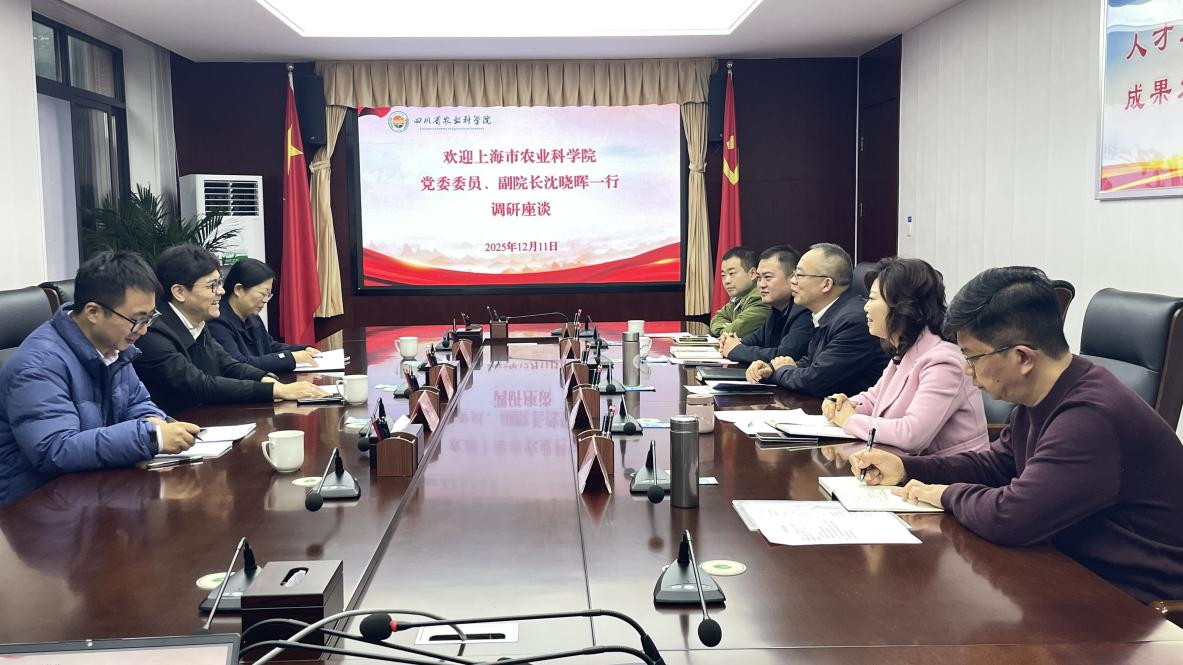 12月11日,上海市农业科学院党委委员、副院长沈晓晖一行来我院调研并座谈,院党委副书记、机关党委书记张雄主持会议。