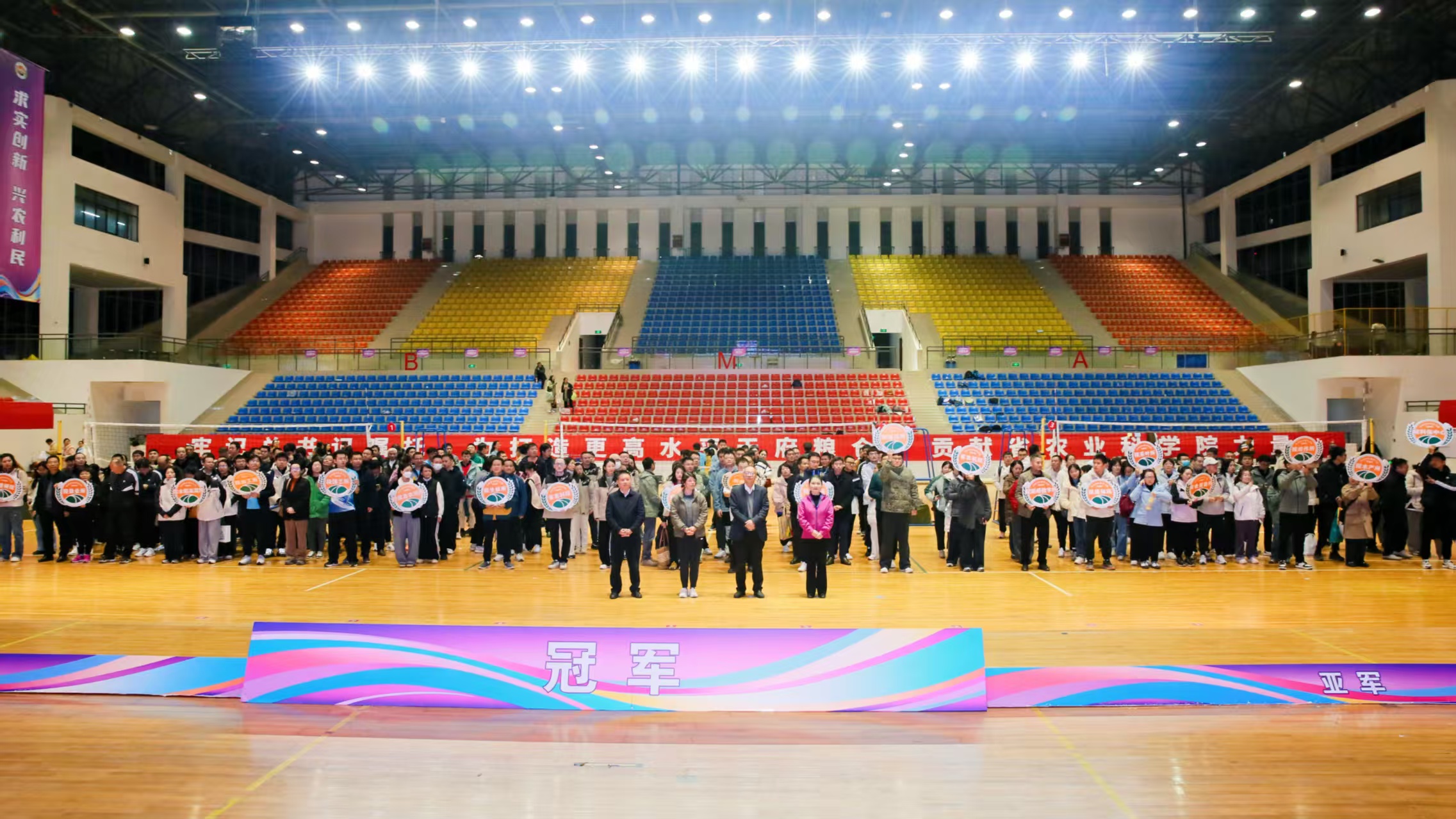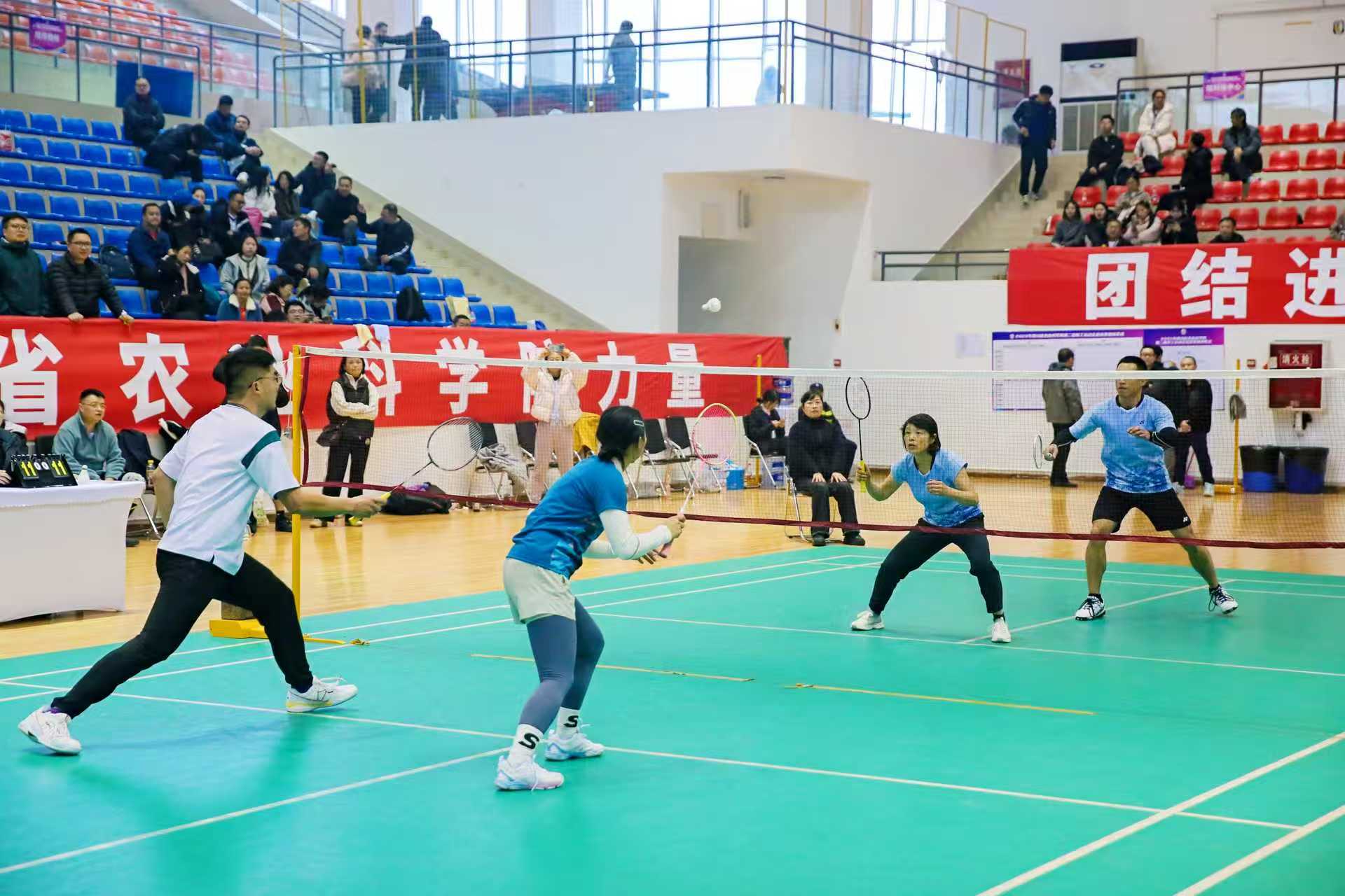 在一段动静相宜、刚柔并济的鼓舞与八段锦融合的开场表演后,运动会正式拉开了帷幕。本次运动会总决赛设置了篮球、羽毛球、气排球3个项目。经过一天的激烈角逐,冠军荣耀诞生。篮球比赛冠军、亚军、季军分别是:院植保所、院园艺所、 院水稻所;羽毛球比赛男双冠军、亚军、季军分别是:院信息农经所刘永波、汪鑫,院加工所刘勇、汤奥星, 省畜科院张大江、曾凯;羽毛球比赛女双冠军、亚军、季军分别是:院机关杜红宇、汪闵,院生核所冷红莲、余桂容,院食用菌所韩婧、舒雪琴;羽毛球比赛混双冠军、亚军、季军分别是:院植保所杨阳、易春燕;院机关杜红宇、李健伟;院信息农经所汪鑫、杨红;气排球比赛冠军、亚军、季军分别是:院机关、院蚕业所 、院资环所。
