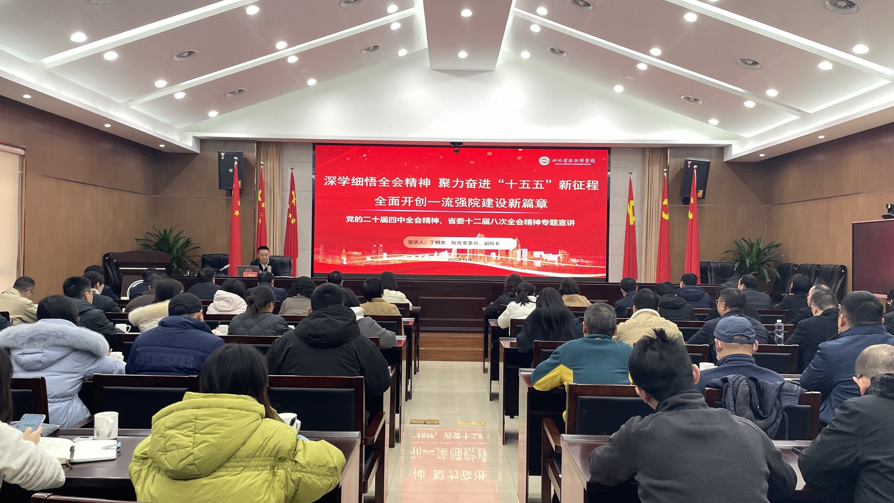 为全面深入学习宣传贯彻党的二十届四中全会精神和省委十二届八次全会精神,推动党中央、省委大政方针和决策部署落地落实,按照省委和院党委部署要求,12月16日下午,院党委委员、副院长丁明忠在院机关会议厅,以《深学细悟全会精神 聚力奋进“十五五”新征程 全面开创一流强院建设新篇章》为主题,为分管联系部门和单位的干部职工作专题宣讲。会议由院办公室主任雷晓葵主持。