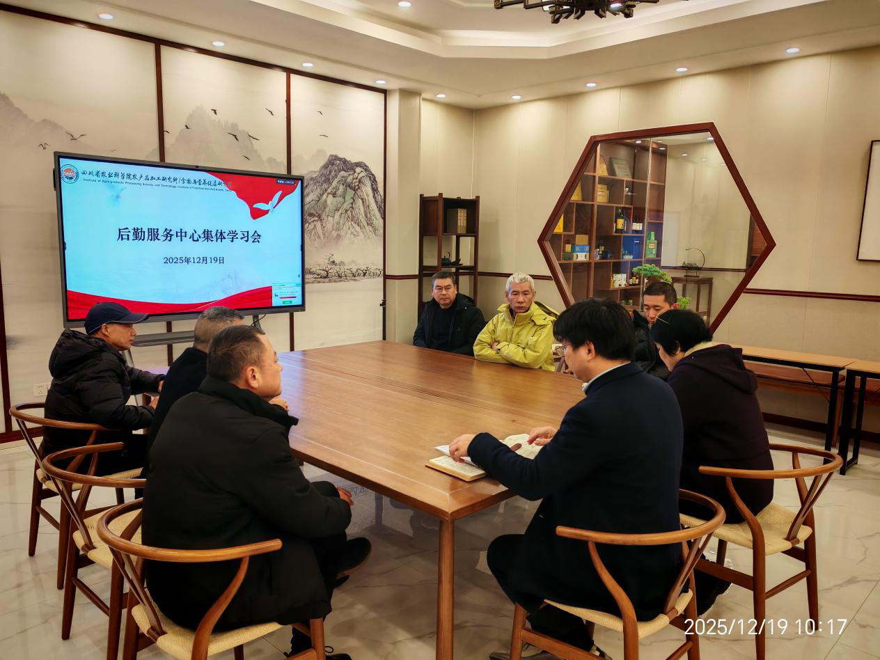 为强化政治思想引领和筑牢安全防线,2025年12月19日上午,加工所后勤服务中心在所四合院品鉴室组织部门集体学习,中心全体职工参会,分管安全工作的副所长李治华到会指导、会议由部门负责人王娟主持。