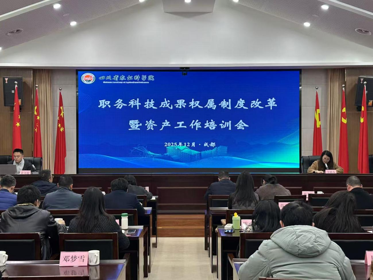 为深入推动国省科技体制机制改革的总体部署,充分激发院职务科技成果权属制度改革的活力,切实提升全院科技成果转化与资产管理整体效能,2025年12月17日产业资产处组织召开了“2025年全院职务科技成果权属制度改革暨资产工作培训会”。院属各单位分管改革和资产的领导及业务管理人员80余人参加了此次会议。