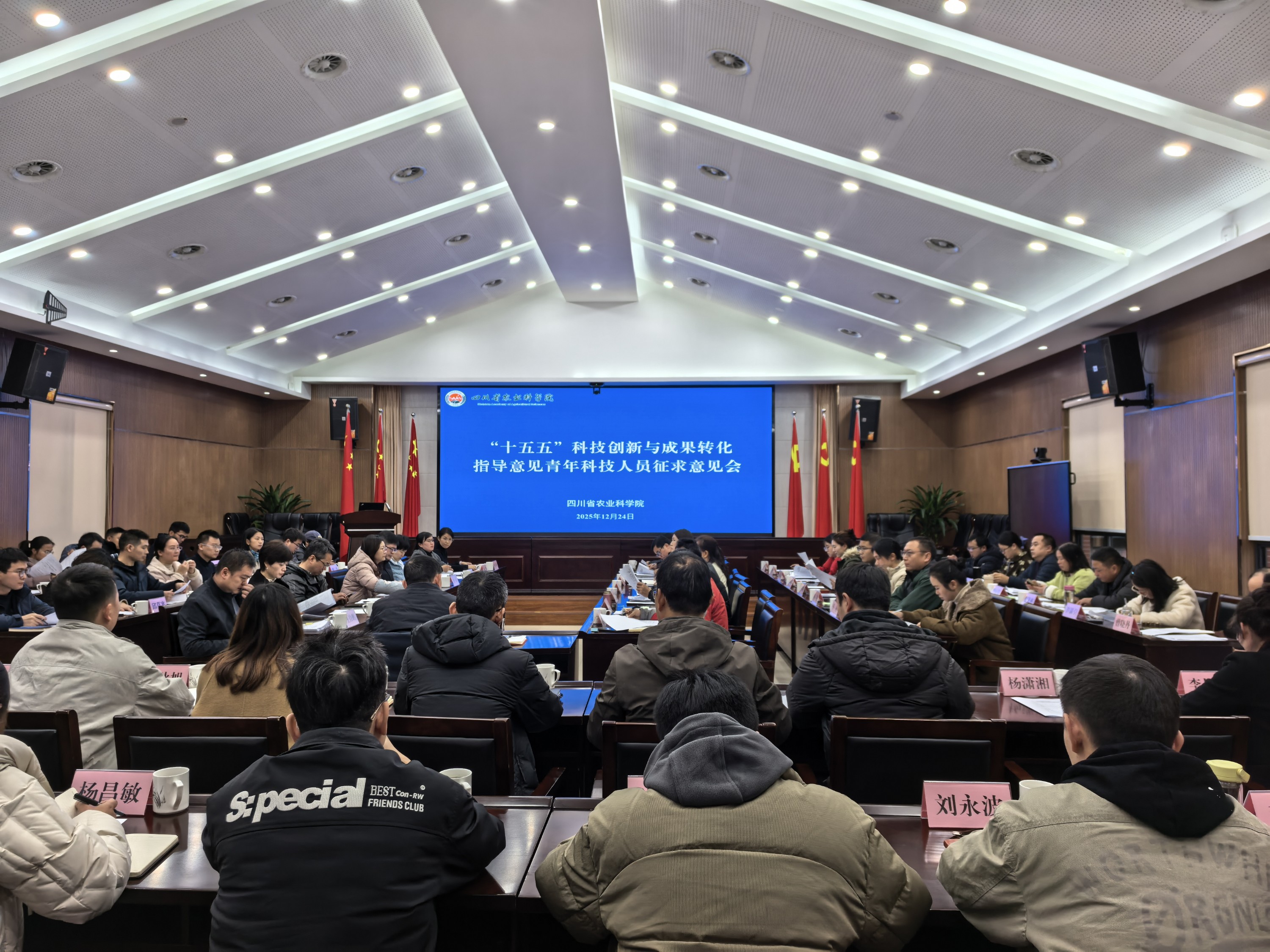 为加快推进全院科技创新体系化、建制化、协同化改革,加速成果转化提质增效,支撑“国内一流、国际知名”现代化农科院所建设,2025年12月24日,我院组织召开“十五五”科技创新与成果转化指导意见青年科技人员征求意见会。编制小组成员、青年科技人员代表、院科管处相关人员等90余人参会,会议由院党委委员、副院长刘永红主持。