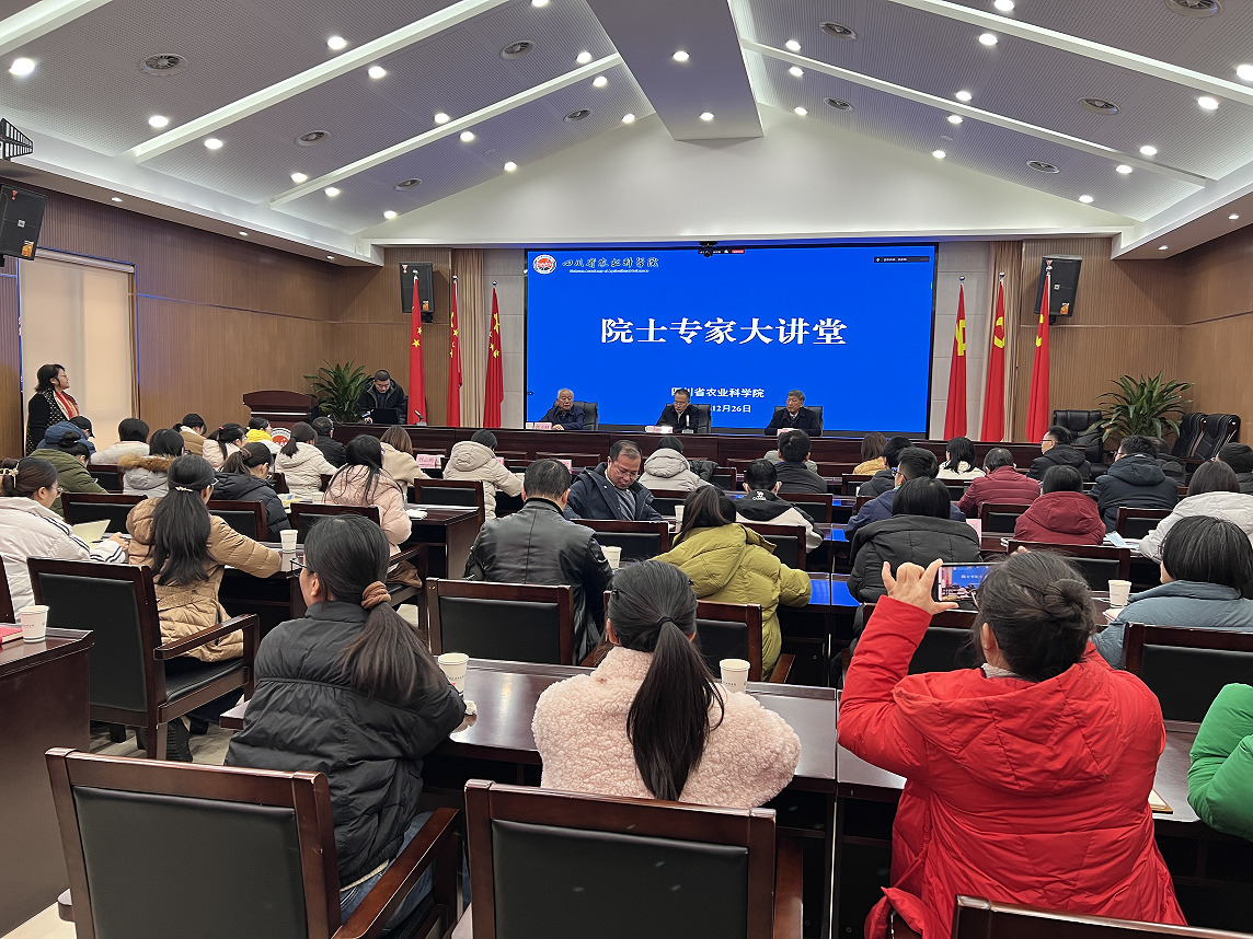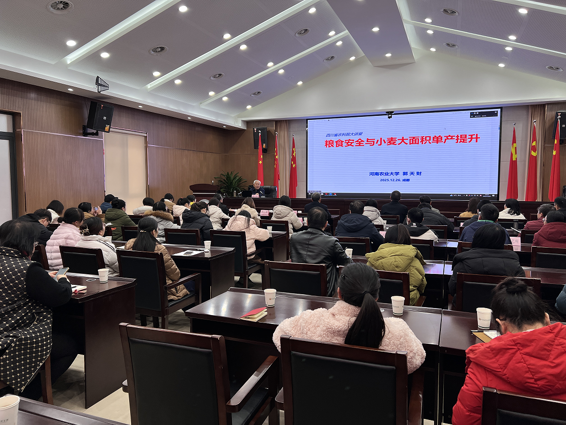 为深入贯彻落实习近平总书记来川视察系列重要指示精神,搭建高水平学术交流平台,2025年12月26日,四川省农业科学院成功举办新一期的"院士专家大讲堂"活动。本次活动特邀中国工程院院士、扬州大学张洪程教授和河南农业大学郭天财教授作专题报告。报告由院总农艺师、加工所党委书记张鸿研究员主持,院属各单位100余位中青年专家在线下或线上参加。