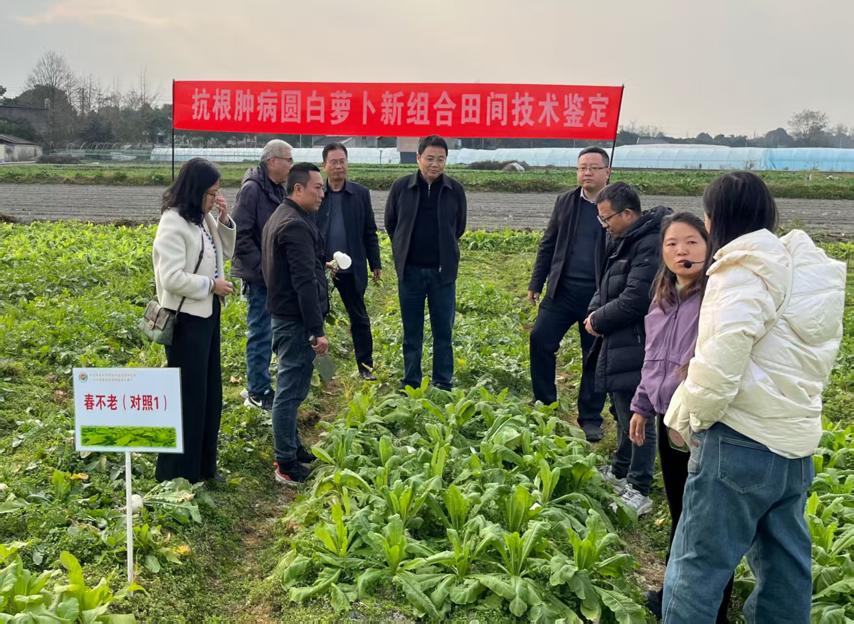 12月25日,四川省非主要农作物品种认定委员会办公室组织省内同行专家,对院水稻高粱所选育的两个抗根肿病萝卜新组合“C92421A×C45078”和“C72179A×C45074”进行了田间技术鉴定。