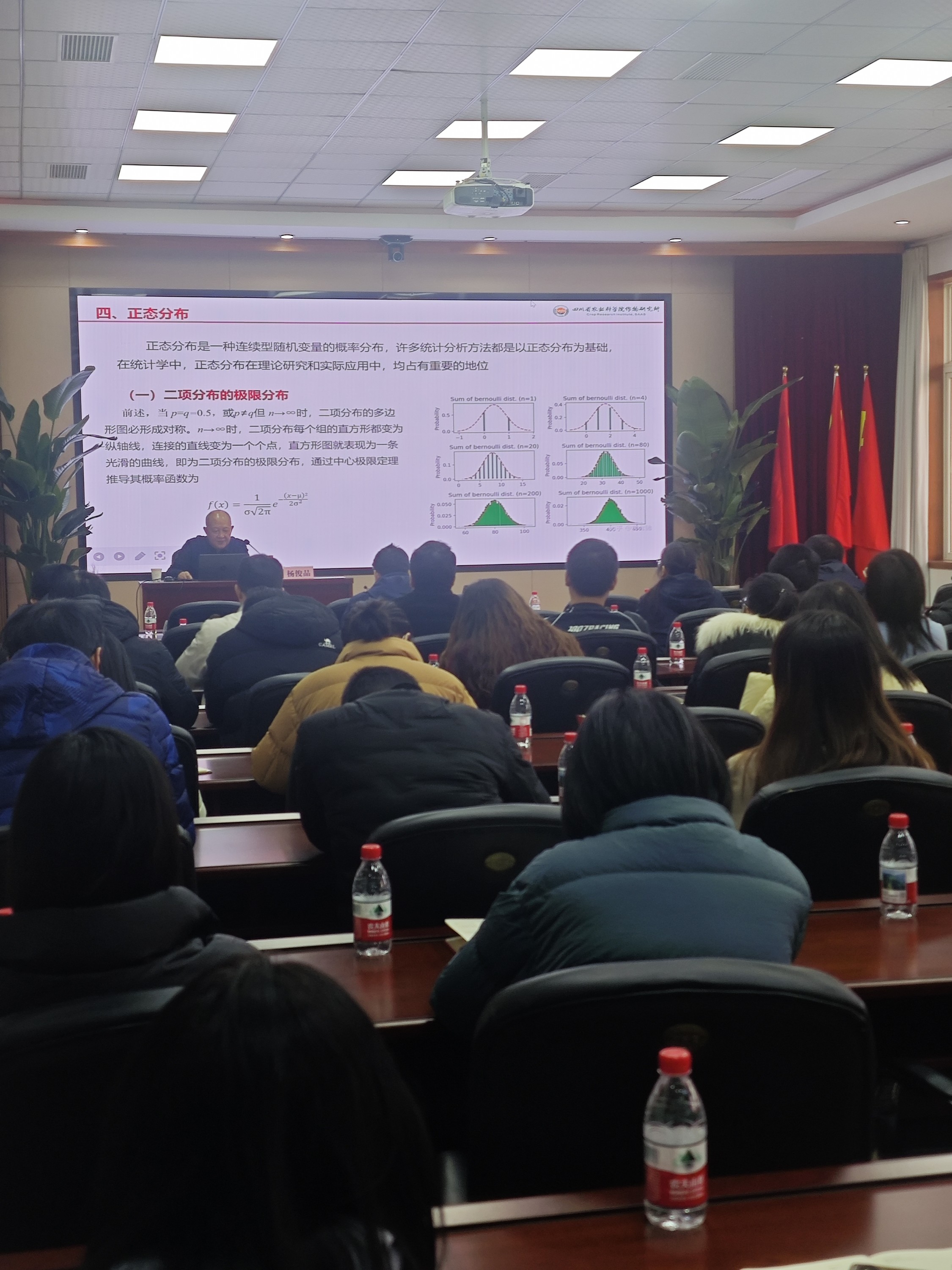 杨俊品研究员以“田间试验设计与统计分析”为题,围绕试验设计三原则、抽样方法、概率分布及统计推断等内容,系统阐述了二项分布、正态分布与t分布等在农业科研中的实际应用。通过案例解析,强化了生物统计学在规范试验设计与精准数据处理中的基础支撑作用。授课内容紧贴科研实际,对提升试验设计规范性、数据分析准确性和结论可靠性具有重要指导意义。