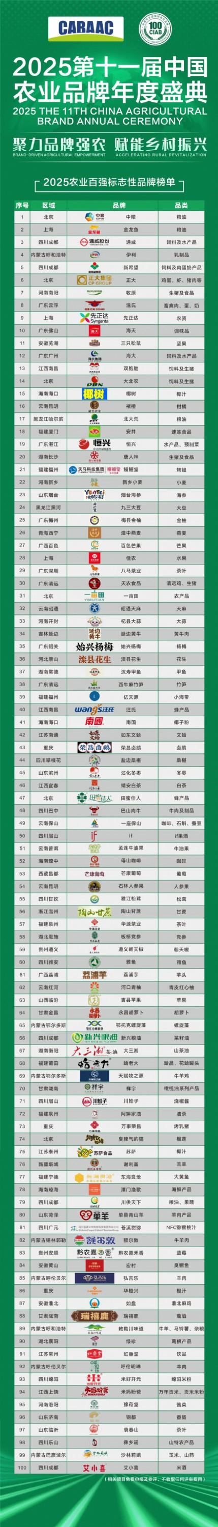 这场农业品牌领域的年度盛会汇聚了农业农村部相关领导、行业权威专家、领军企业家等各界精英,通过主题演讲、圆桌对话、成果发布、颁奖表彰等多元环节,围绕品牌培育、产业升级、乡村振兴等核心议题展开深度交流。盛典现场,在中国农业百强标志性品牌发布仪式环节,院总农艺师张鸿作为见证嘉宾之一,与其他特邀嘉宾一起上台按亮启动柱共同见证,并隆重发布“2025中国农业百强标志性品牌”,榜单覆盖肉蛋奶、粮油、果蔬、茶叶、水产、休闲食品、调味品、农资等近百个品类,中粮、金龙鱼、通威、伊利、新希望、正大、牧原、温氏、先正达、海天等100个品牌荣耀上榜,充分彰显了我国农业品牌建设的最新成果。