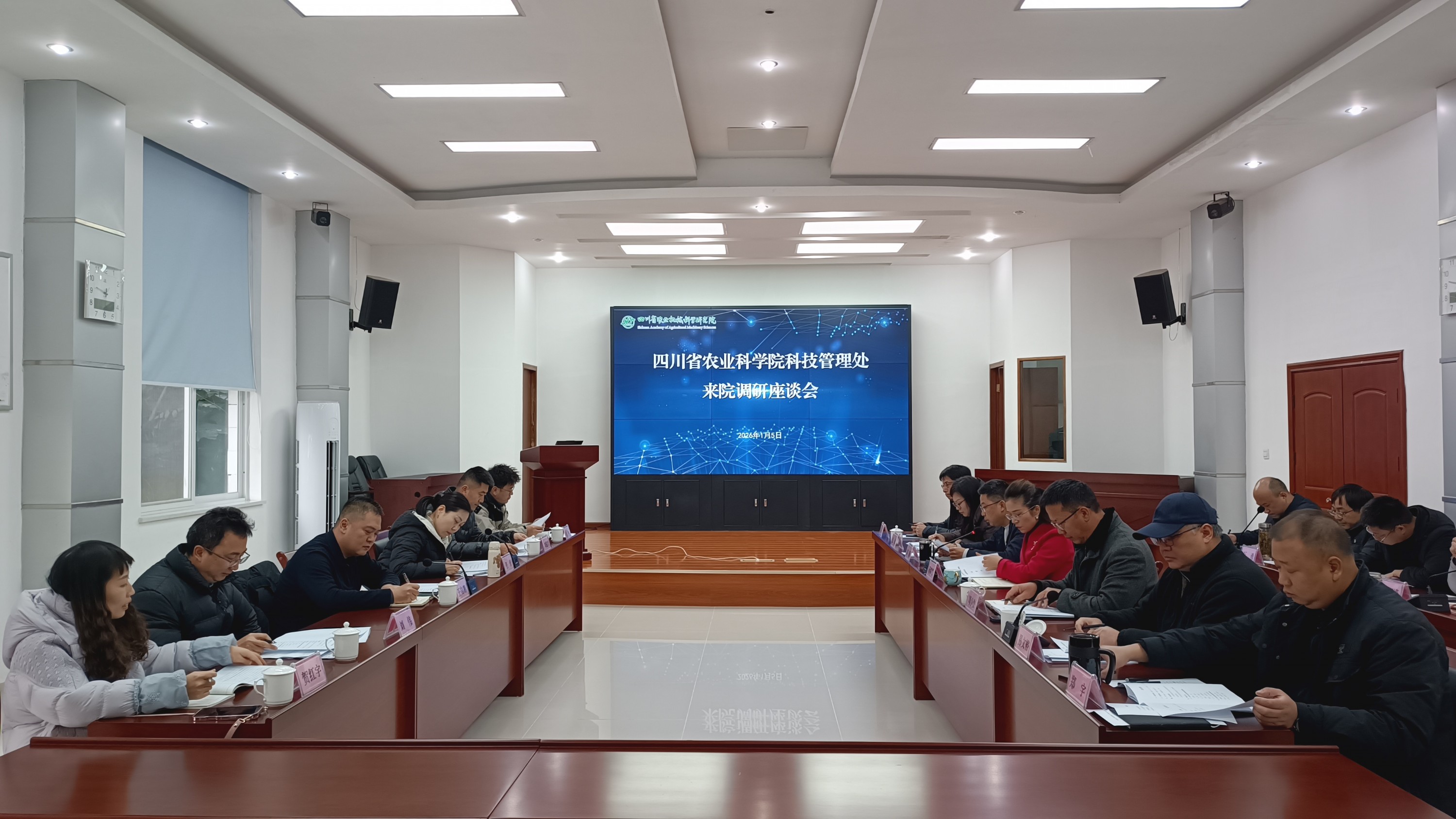 为全面总结“十四五”科技创新工作成效,科学谋划“十五五”科技创新规划,2026年1月5日,省农科院科技管理处处长王自鹏等一行6人莅临农机院开展科技创新专项调研座谈,农机院领导班子、各研究中心主要负责人及科管办相关人员参会。农机院党委书记、院长蒋辉霞主持会议。