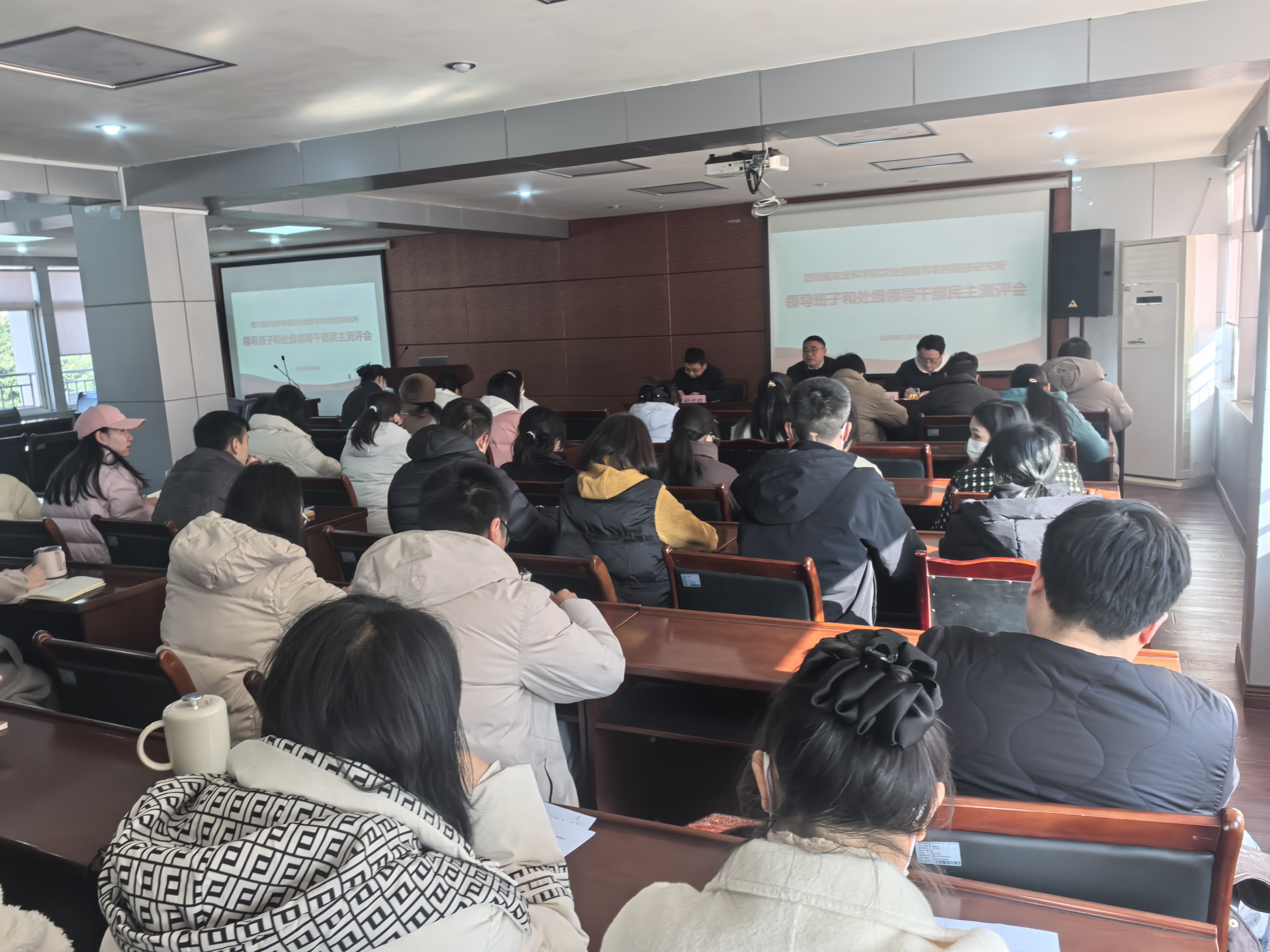 2026年1月9日下午,院信息农经所在四楼会议室召开2025年度领导班子和领导干部民主测评会,会议由党委书记何鹏主持,全体干部职工参加会议。