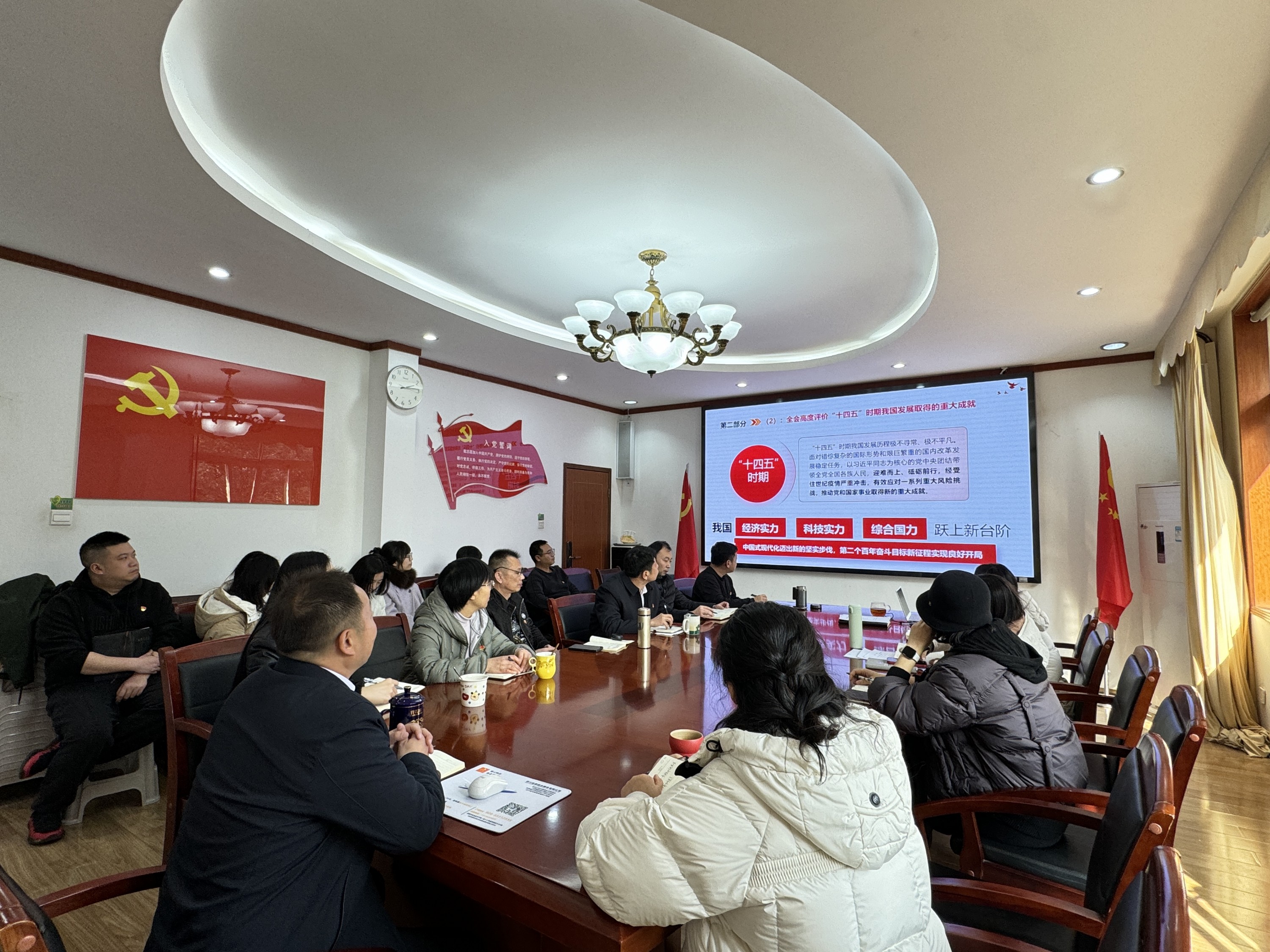 1月9日,四川省农业科学院科技保障中心第一、五党支部在中心四楼会议室召开党的二十届四中全会和省委十二届八次全会精神专题宣讲会,中心党委副书记、主任李浦,中心党委委员、纪委书记、副主任范秀英,中心党委委员、副主任刘培作为所在支部普通党员参加会议。会议由第一党支部书记刘爱华主持,一、五党支部全体党员参加会议。