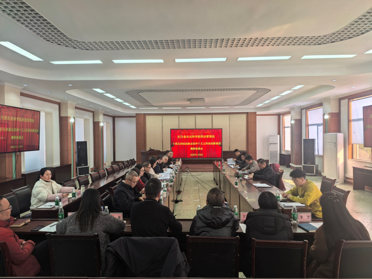 2026年1月9日下午,四川省农业科学院科技管理处处长王自鹏,副处长蒋俊、刘伟等一行五人,莅临省畜科院,开展科技创新专题调研座谈会。此次调研旨在总结“十四五”科技工作成效,科学谋划“十五五”创新发展规划。会议由省畜科院党委副书记、院长杨朝武主持,副院长范景胜、康润敏,各科研团队负责人及科管成果办相关同志参加会议。