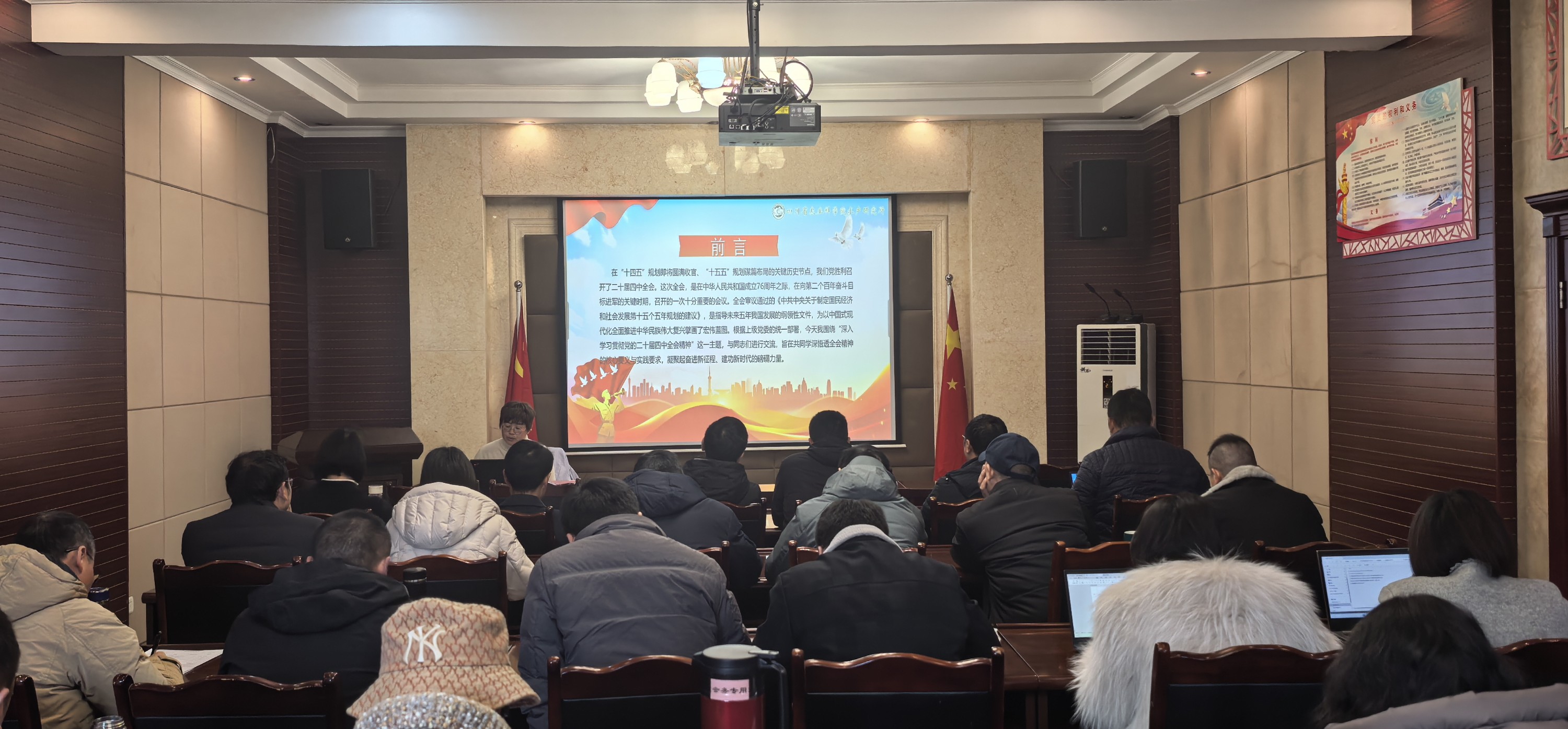 为深入学习贯彻党的二十届四中全会和省委十二届八次全会精神,1月7日上午,院水产所党委书记林珏同志在成都所部三楼会议室,以《以全会精神为引领 擘画水产新蓝图》为主题作了专题宣讲。全所在职职工共62人参会。