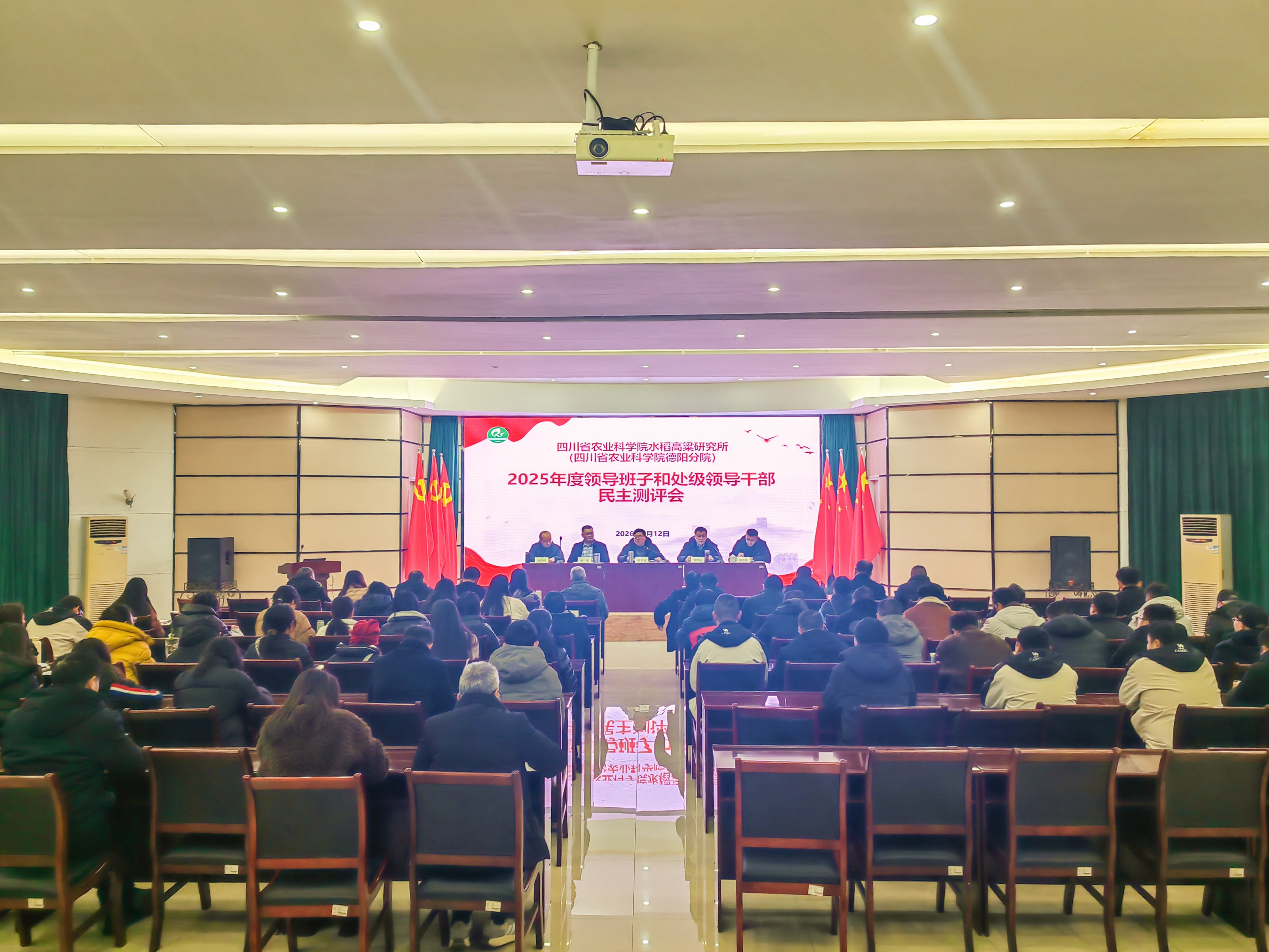 1月12日上午,院水稻高粱所召开2025年度领导班子和处级领导干部民主测评会,所领导班子成员、在职职工共计70余人参加会议。会议由所党委书记刘宗敏主持。