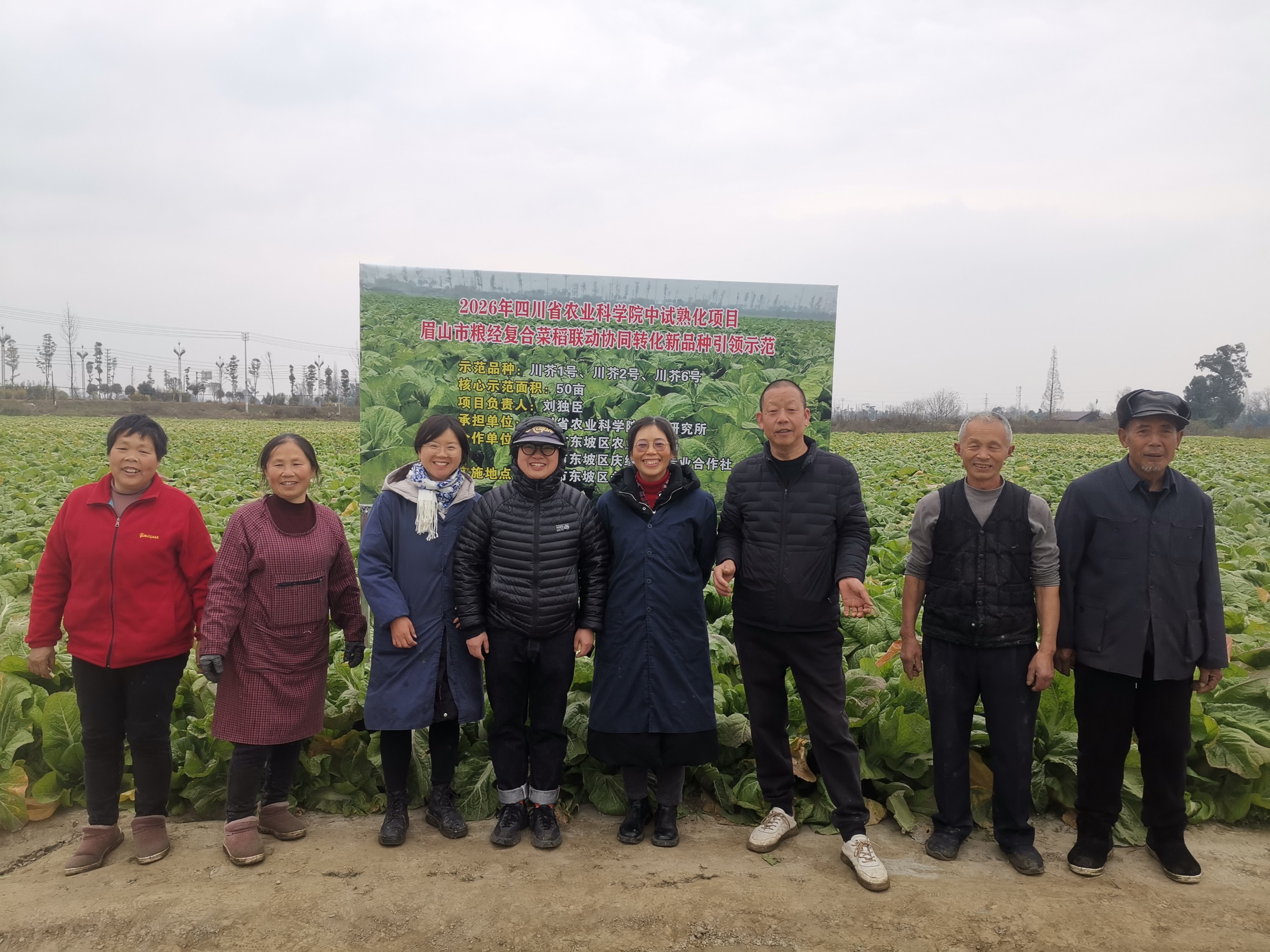 2026年1月20日,院园艺研究所芥菜育种与栽培团队刘独臣研究员、夏枫高级农艺师一行,前往眉山中试熟化基地,开展芥菜新品种(组合)的品比田间调查与测产工作,并进行生产交流与技术指导。作为院中试熟化项目的关键一环,本项工作旨在推动科研成果向实际生产转化,助力优质芥菜品种落地推广。