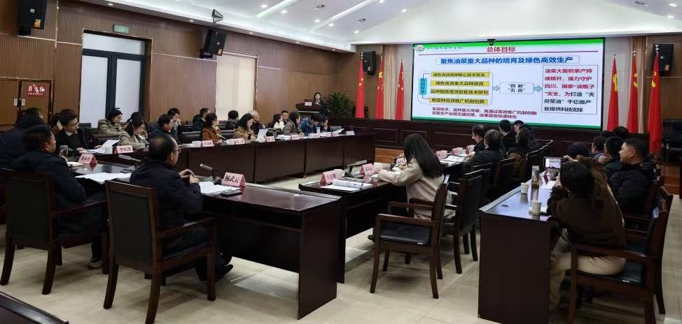 1月29日,由院作物所牵头的四川省“十四五”生物育种重大科技专项“绿色高效油菜新品种培育”项目2025年度工作总结会在成都召开。中国工程院院士王汉中,院党委委员、副院长刘永红,省政府参事、院学术委员会主任杨武云,科技厅资源配置处四级调研员李庆洪、科技厅农村中心副主任冯文帅、农业农村厅种业发展处处长沈丽等专家领导及项目组成员参加会议。