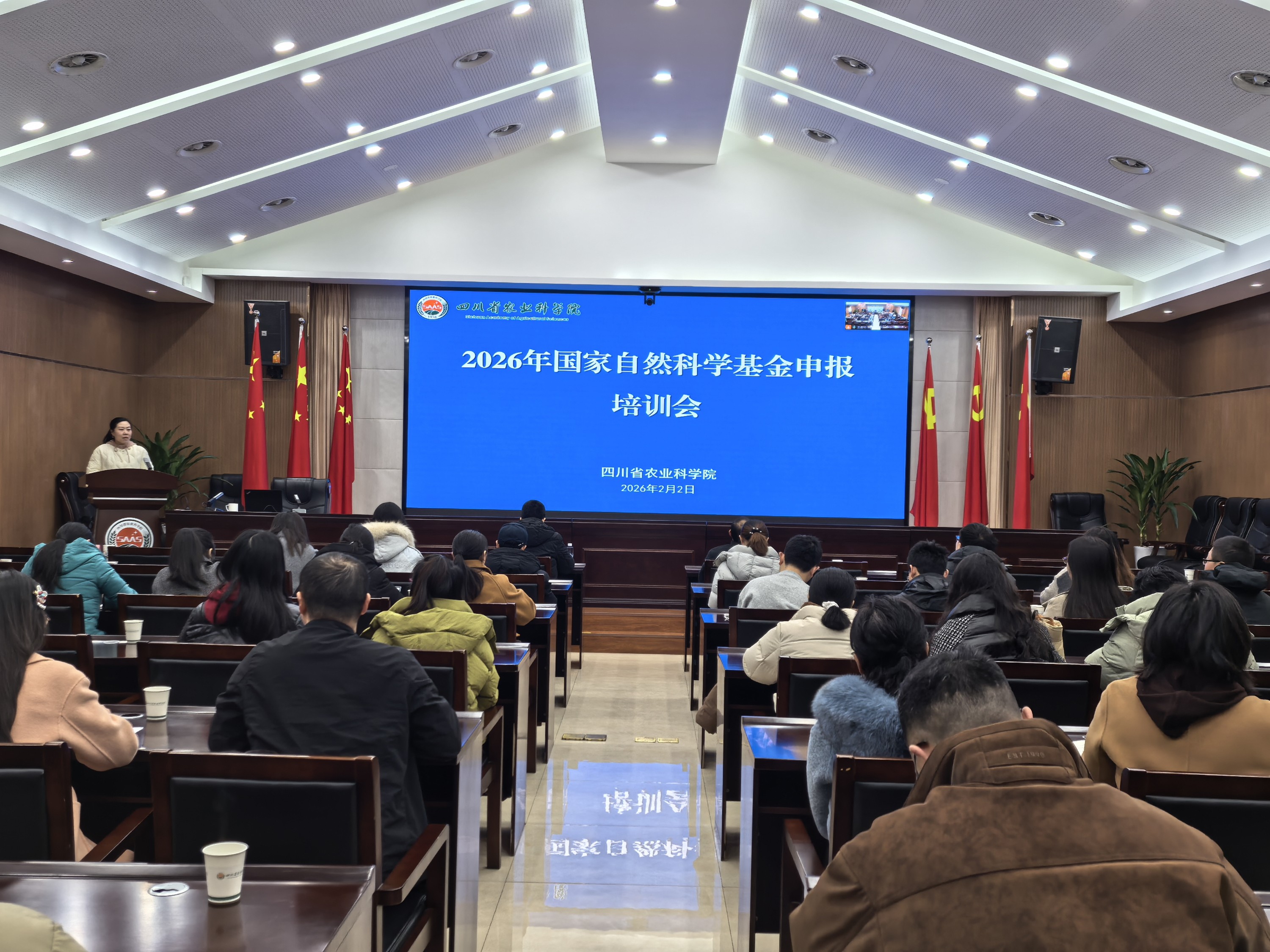为进一步提升我院国家自然科学基金项目申报质量,精准把握基金申报最新政策导向、评审标准及撰写技巧,助力更多优秀科研成果落地生根,我院于2026年2月2日在院机关一楼会议厅举办“2026年度国家自然科学基金申报培训会”。培训采用线上线下相结合的方式开展,特别邀请四川大学刘明春教授、朱卫华博士两位业内专家主讲,由院科技管理处副处长张蕾主持。院属各单位共计90余名科技人员参加现场培训,另有近百人通过线上平台同步参与学习。