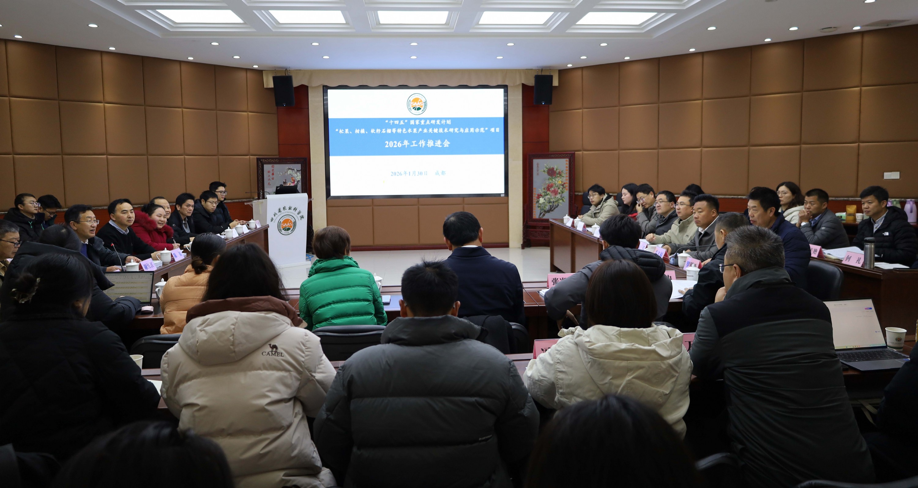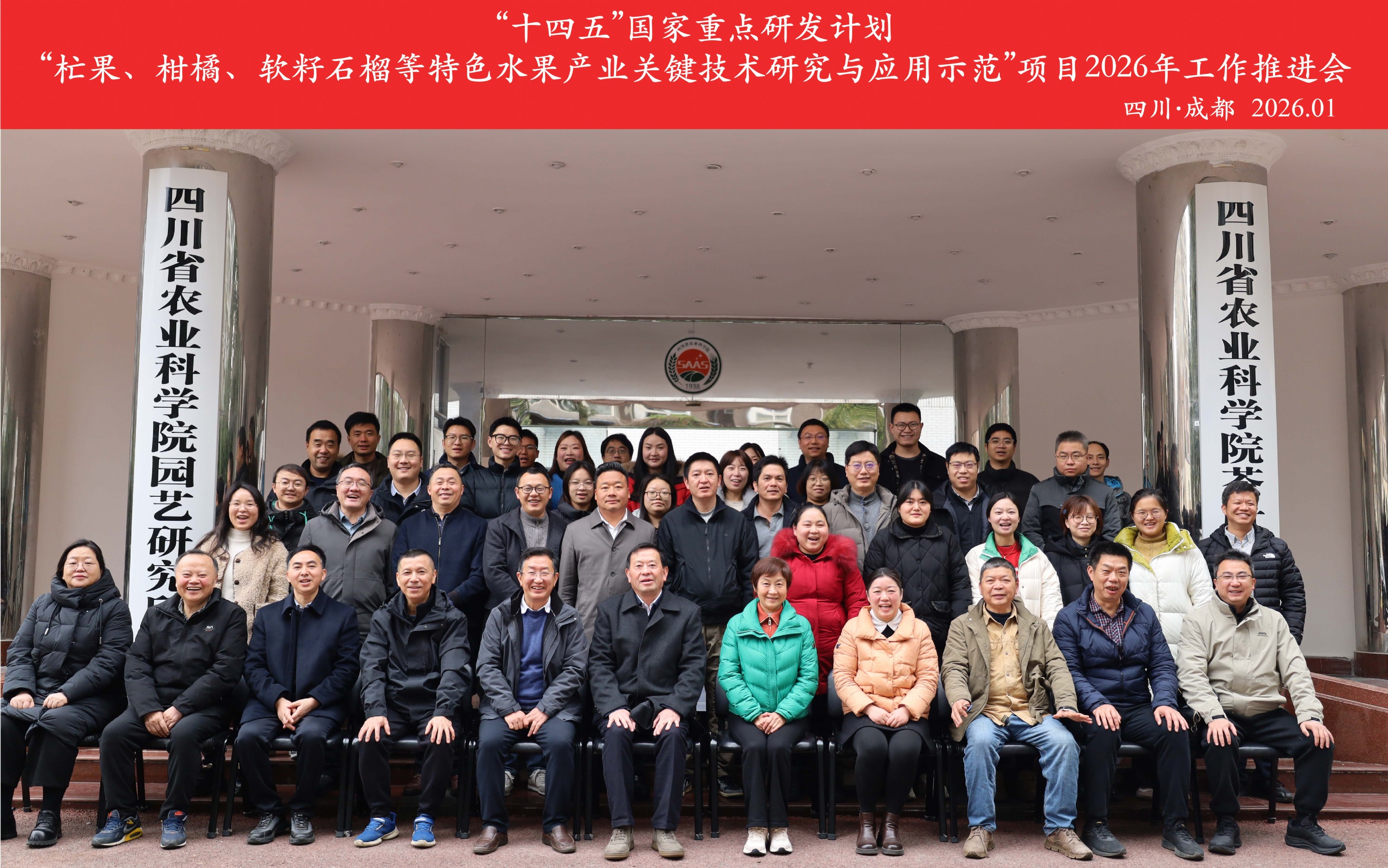2026年1月30日,由四川省农业科学院园艺研究所主持的“十四五”国家重点研发计划“杧果、柑橘、软籽石榴等特色水果产业关键技术研究与应用示范”项目2026年工作推进会在成都顺利召开。会议邀请浙江省农业科学院郜海燕研究员、海南大学林电教授、重庆市农业科学院张云贵研究员、省园艺作物技术推广总站祝进正高级农艺师、攀枝花市农林科学研究院罗照西研究员、北京中诺成会计师事务所张小艳高级会计师组成专家组,对项目整体执行情况进行指导。各课题负责人、项目骨干等50余人参会。项目负责人、院园艺所党委书记谢红江主持会议。