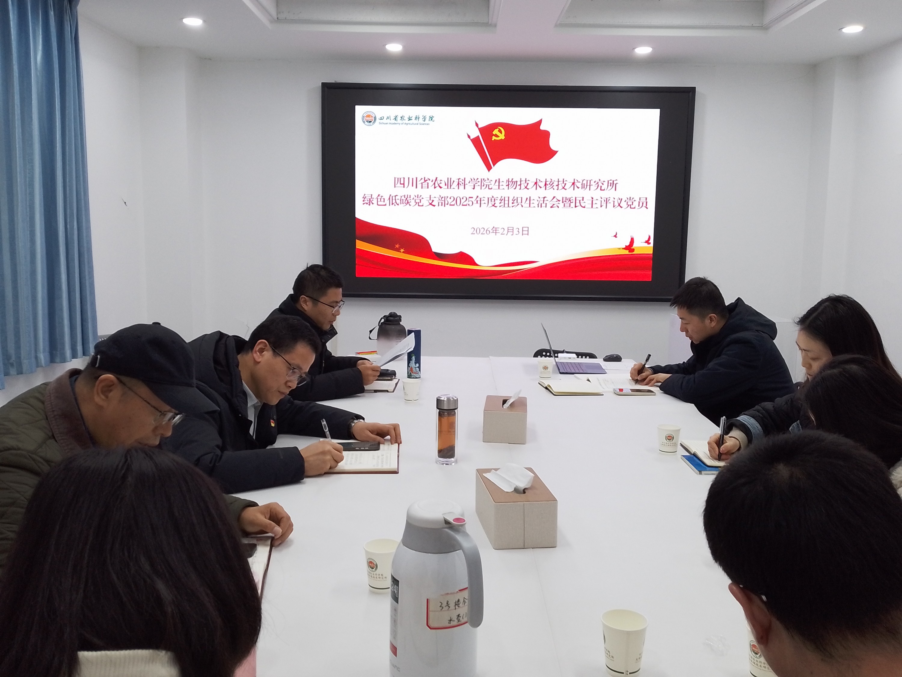 2026年2月3日下午,院生核所绿色低碳党支部召开2025年度组织生活会暨民主评议党员会。所党委书记魏鹏莅临指导,支部书记王强锋主持会议。