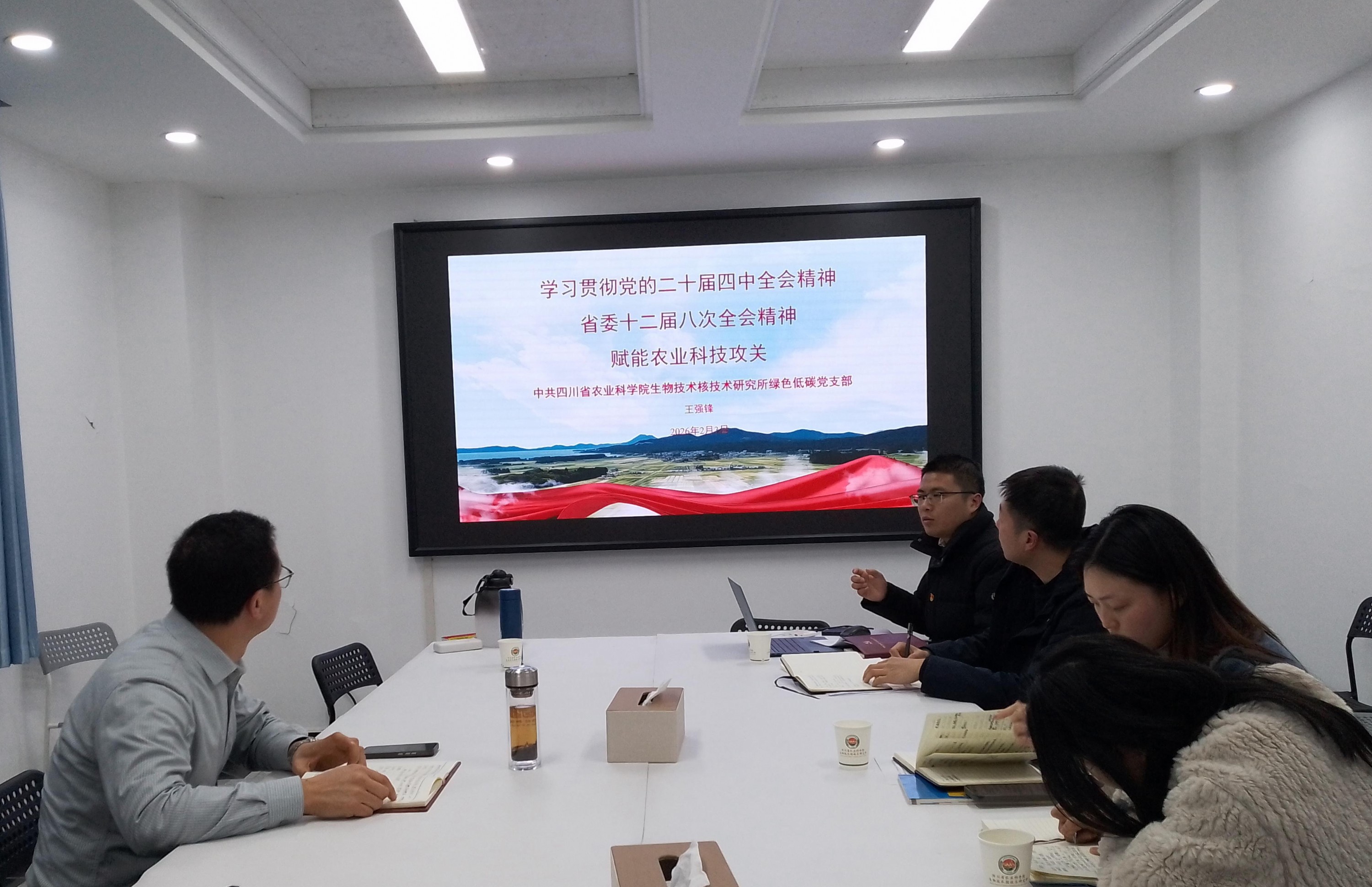 会上,党支部书记王强锋首先带领支部全体党员围绕本次会议“第一议题”学习:习近平总书记对做好“三农”工作作出的重要指示精神、二十届中央纪委五次全会精神和习近平总书记在省部级主要领导干部学习贯彻党的二十届四中全会精神专题研讨班开班式上的重要讲话精神,号召支部全体党员要做政治上的“明白人”,纪律上的“清醒者”,工作上的“实干家”,强化理论武装,以正确的政绩观和务实的行动,学以致用,为农业科研工作践行使命担当。接着,支部宣传委员彭梅芳同志领学了《牟锦毅同志在院党委理论学习中心组(扩大)会上的讲话》精神。随后,支部全体党员深入开展了批评与自我批评,认真查摆问题,达到了统一思想、增进团结、明确改进方向的实效。民主评议党员环节,本着公平公正的原则,评选出2名“优秀”党员。最后,王强锋同志分享了《学习贯彻党的二十届四中全会精神、省委十二届八次全会精神——赋能农业科技攻关》的主题党课,号召支部全体党员建立农业科研体系,树立崇高理想,持之以恒,推动农业科技自立自强。