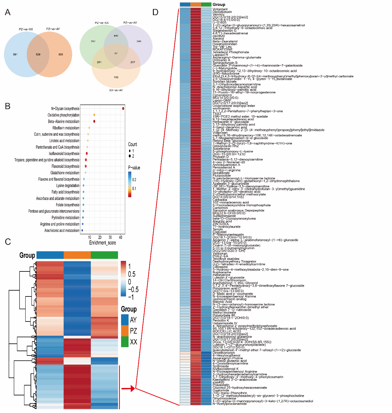 研究发现,三大产区辣椒在脂肪和辣椒素类物质含量上存在显著差异,其中彭州产区辣椒辣椒素含量最高,四川两地产区脂肪含量显著高于河南产区。通过代谢组学分析,共鉴定出 2603 种高置信度代谢物,筛选出 529 种差异累积代谢物,这些代谢物主要富集于 β-丙氨酸代谢、植物激素信号转导及 N-糖基化生物合成等关键通路。β-丙氨酸和丙二酸的富集是四川产区辣椒脂肪合成能力更强的重要原因,而辣椒果实成熟期(6-8月)日均最高温度与辣椒素含量呈显著负相关,彭州产区的适宜温度28℃更利于辣椒素积累。