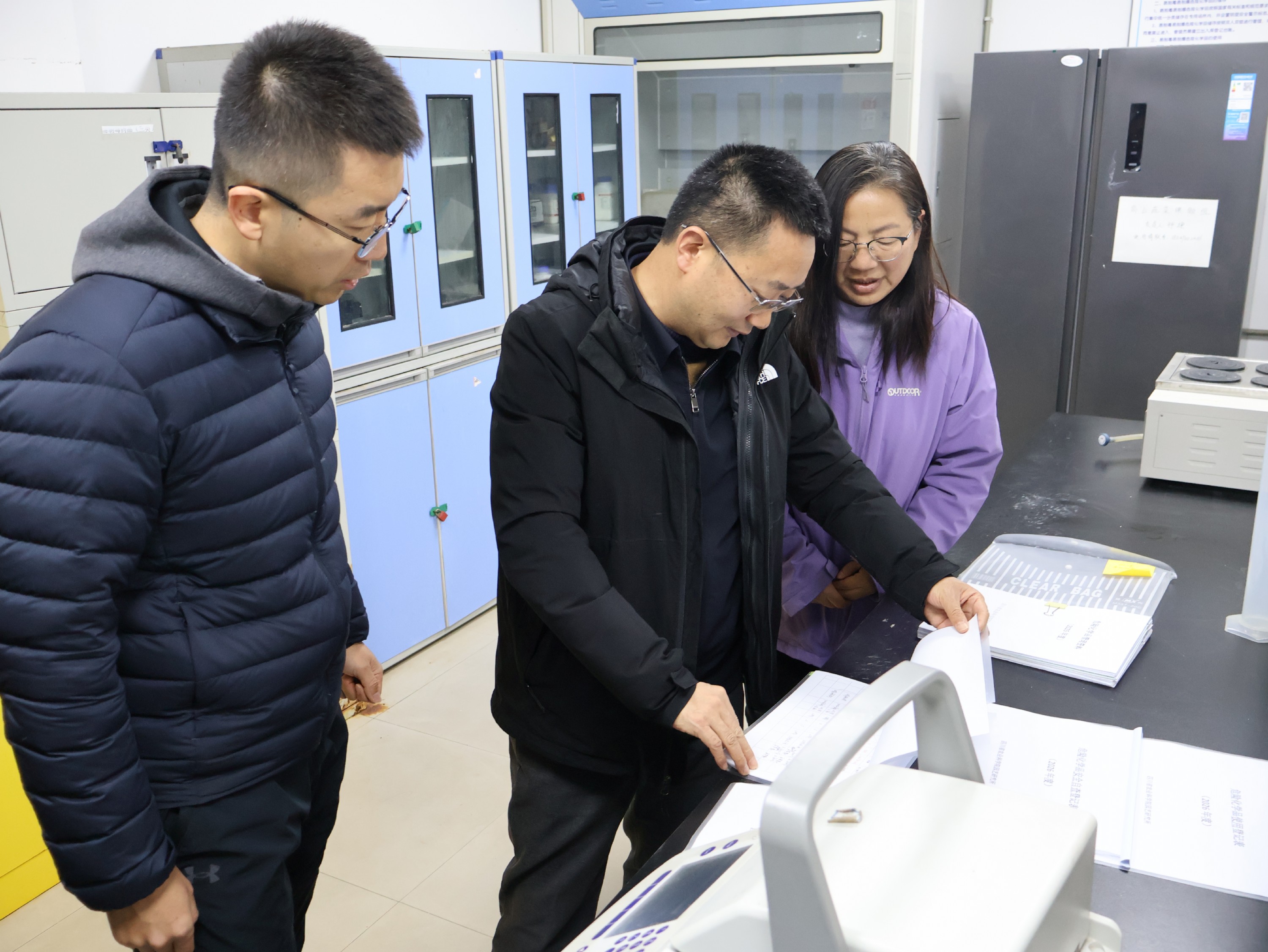 在督导检查过程中,丁明忠一行就相关重点区域、重点部位、重点环节进行检查,实地查看实验室危化品管理、安全设施运行、安全物资储备及项目施工安全管理等情况,详细听取有关单位负责人关于安全生产责任制落实、隐患排查治理及节日期间值班值守情况的汇报。针对发现的问题,现场提出整改要求,明确整改责任和要求,压紧压实相关职能职责。