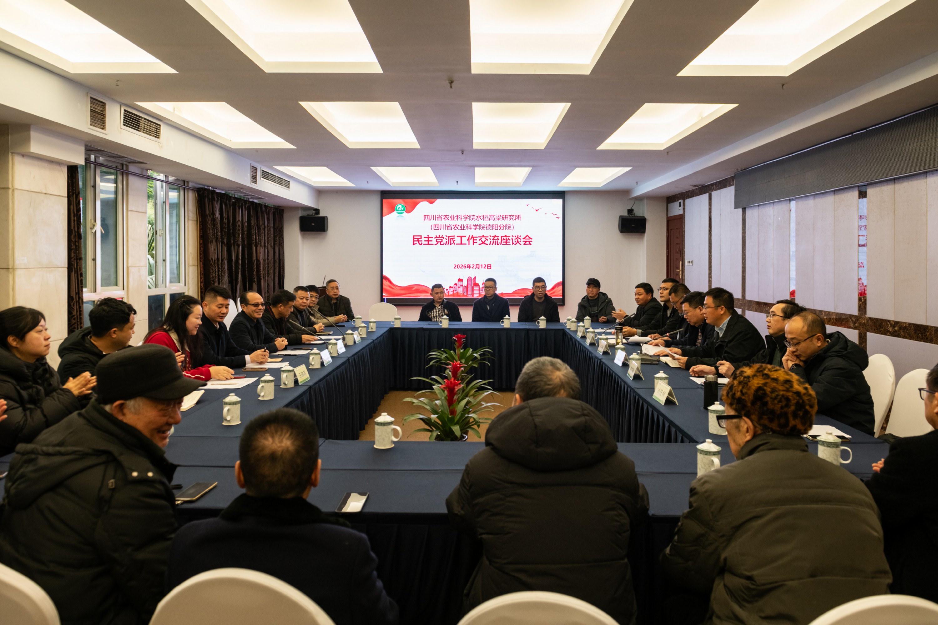 2月12日,为深入贯彻新时代党的统战工作要求,搭建民主党派沟通联系平台,凝聚科研发展合力,院水稻高粱所召开民主党派沟通交流座谈会。民盟泸州市委会专职副主委、秘书长徐洋和机关组宣科科长王珈英,九三学社泸州市委会副主委刘铭和四级调研员张利彬受邀出席会议。所长蒋开锋、所党委书记刘宗敏等党政班子成员和院水稻高粱所民盟支部、九三支社党派成员参加会议。会议由刘宗敏同志主持。