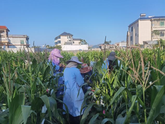 海南省陵水黎族自治县,玉米南繁授粉与田间管理工作有序进行