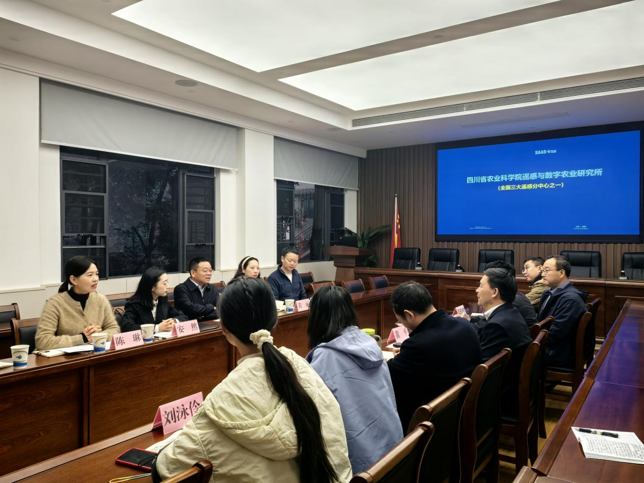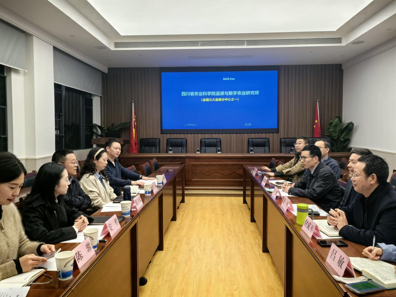 2026年2月28日,简阳市委副书记张文豪带队,市委农办专职副主任黄丽、杨家镇镇长安然等一行6人莅临院遥感数字所开展调研交流。所党委书记黄平主持座谈会议,所长付成平、总经济师刘泳伶、总农艺师王思及科室负责人、相关科研团队人员参会。